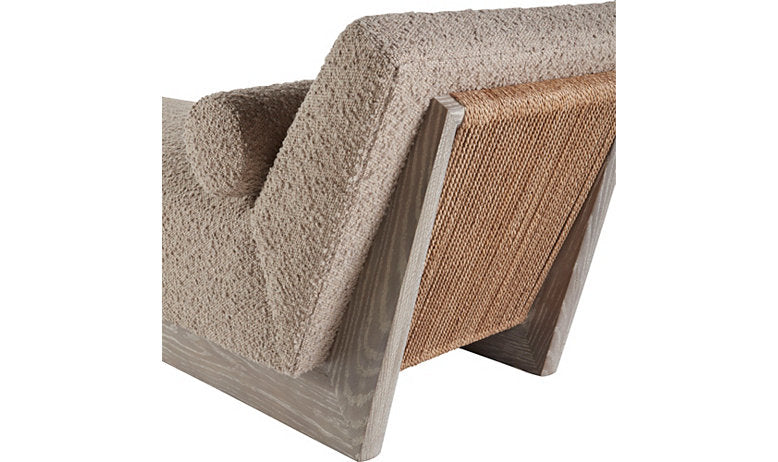 White oak framed chaise with abaca rope strand accent. Tight segmented seat. (2) 6" x 26.5" Bolster pillows standard.