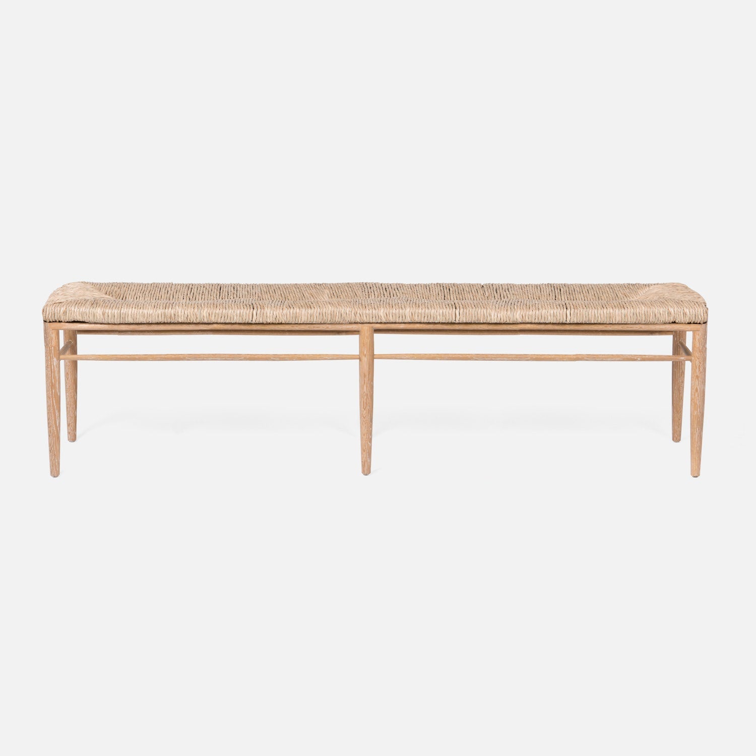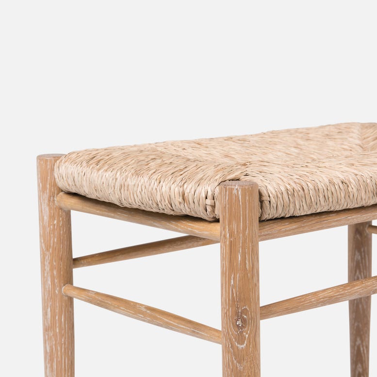 Modern meets classic in our Colwyn, a bench woven in twisted natural rush fiber. The frame, slender yet sturdy, is made of cerused white oak veneer that will fit into any palette.