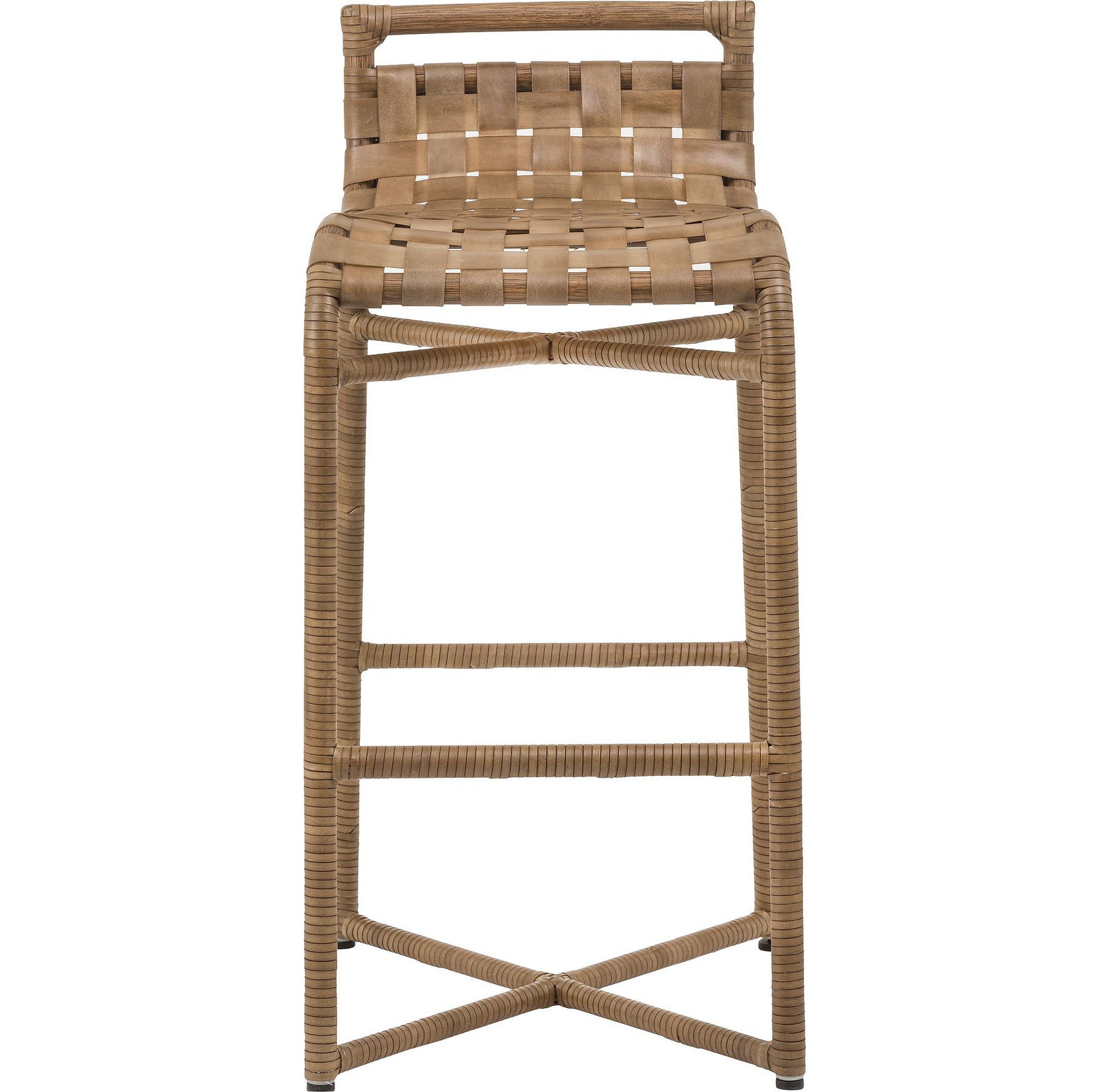 The Crin Barstool design was born from the dramatic shape and materials of the Crin Dining Chairs. This interpretation of the iconic Antalya stool is built upon a sturdy steel base, wrapped carefully in rawhide, topped with an arching wide-strapped rawhide seat, and secured with brass nailheads. Contrast, scale, proportion and materials meet to make a powerful statement.