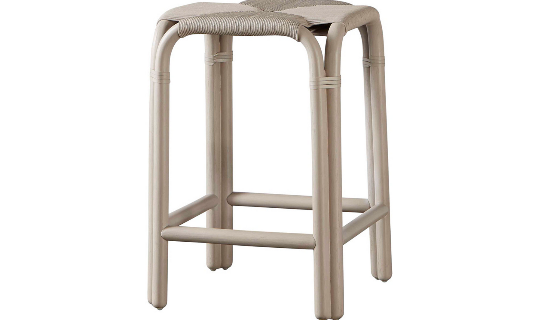Backless Woven Rattan and Metal Frame with Rawhide Weave and Four Kickplates.