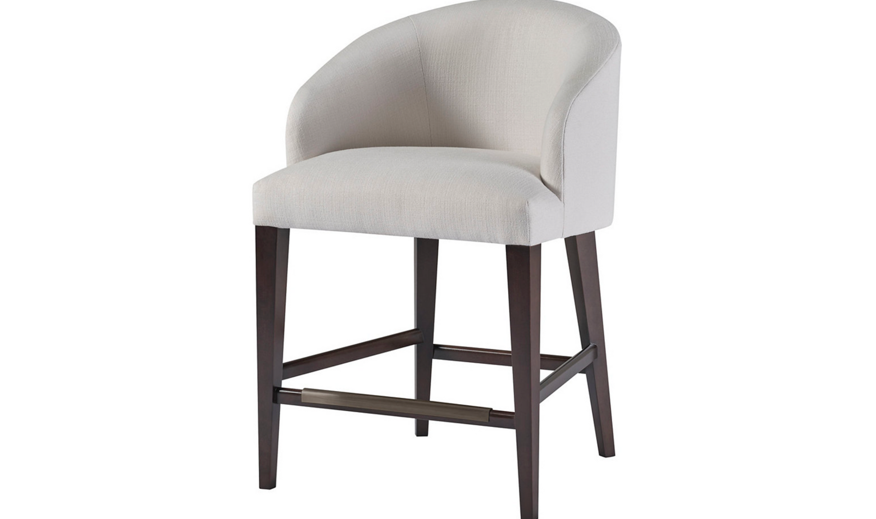 The Adler Counter Stool reimagines the classic barrel chair for an elevated, counter-height experience. This piece features comfortable upholstery, a large seating area and solid wood construction with your choice of a Brushed Stainless Steel or Brushed Antique Bronze kickplate.