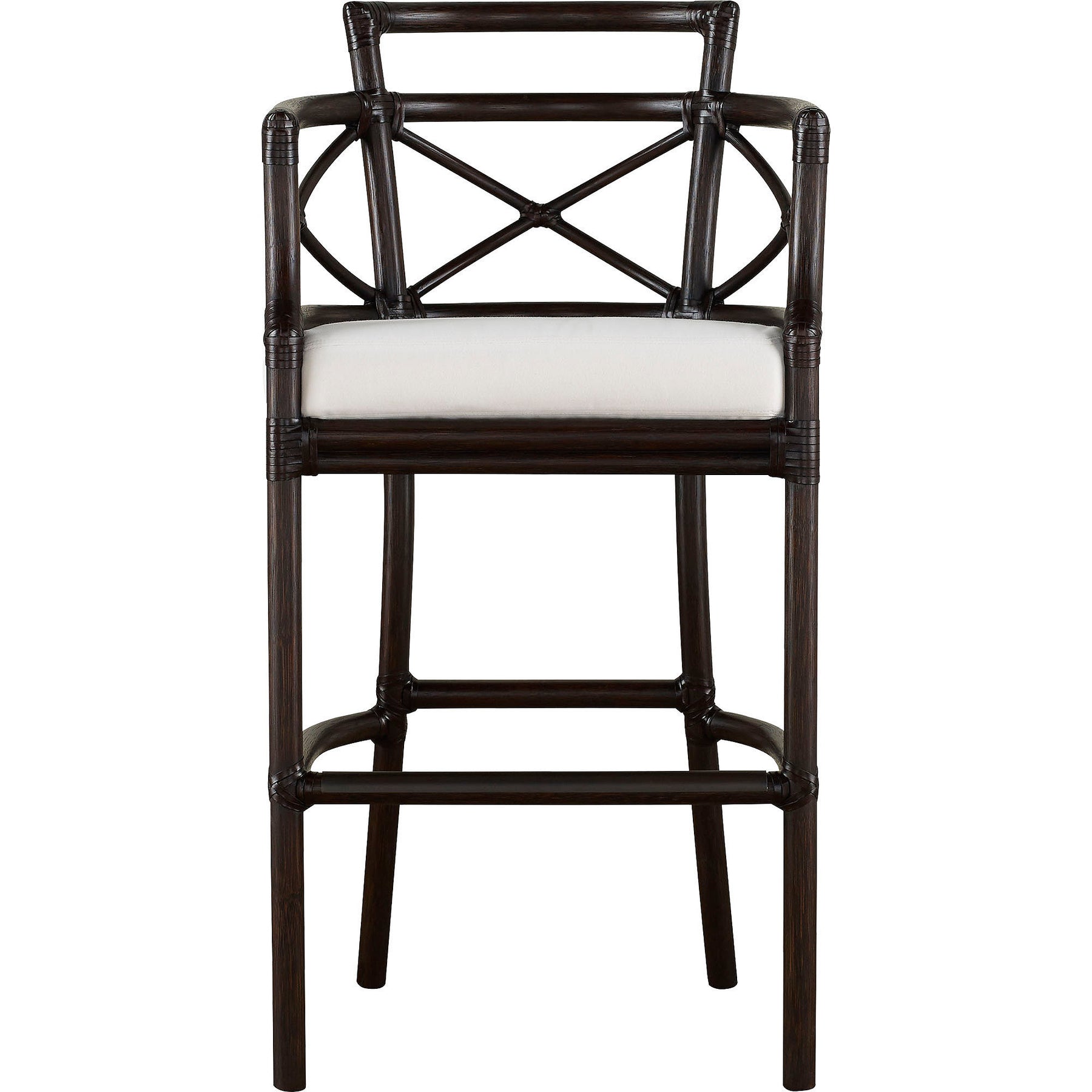 Inspired by the shaping of Venetian gondolas, the Gondola Arm Barstool is Based off of Elinor McGuire’s original design. Blending rattan, rawhide and upholstery, each stool is handcrafted in the McGuire tradition.