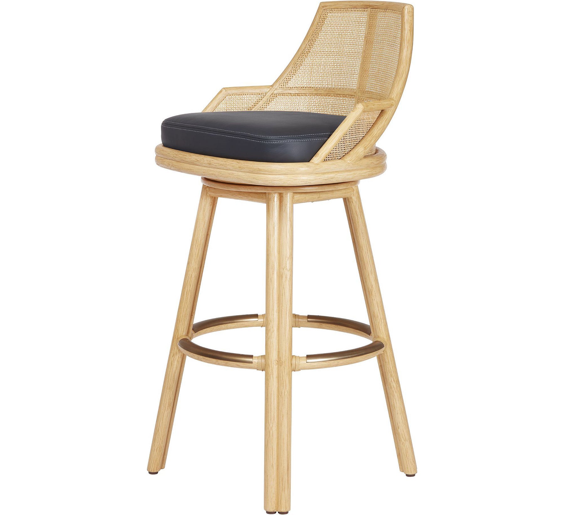 The Hayes Swivel Counter/Barstool takes inspiration from the Hayes Dining Chair: from the dramatic sweep of the arm, high back and comfortable pitch to the intricate framework on the outside back. The stool features a 6 over 6 caned interior, accentuated by a graphic rattan frame that curves to the body. Contemporary in design, the use of classic rawhide bindings draw from McGuire's rich history and patented technique.