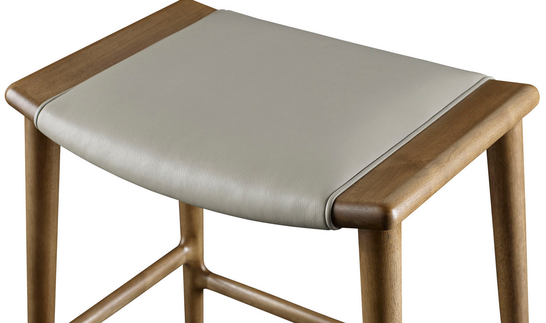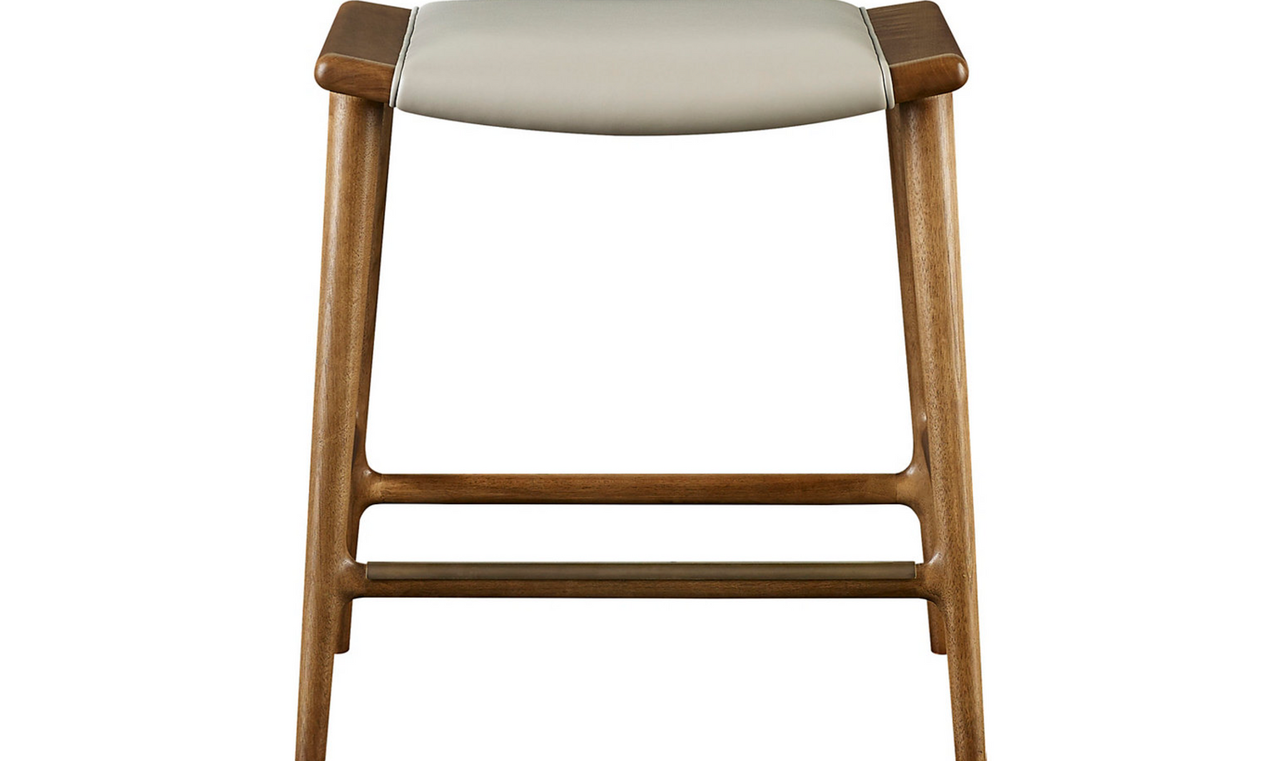 This graceful barstool is beautiful as well as functional. Scaled to work at counter height, the skillfully shaped and joined solid walnut supports a curved and comfortable upholstered seat cushion with a Warm Bronze kickplate on which to rest your feet.