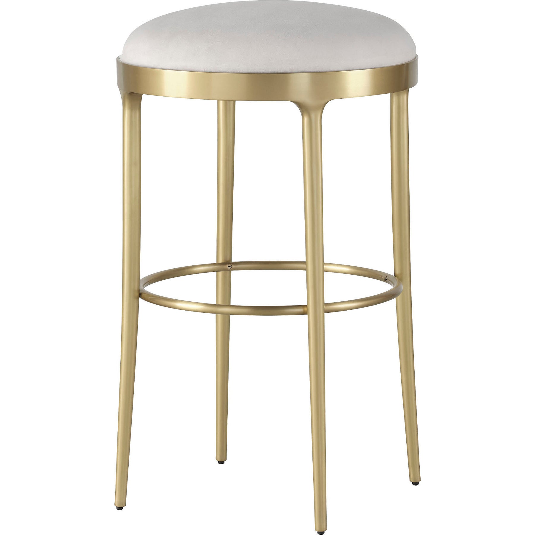 The Maximalist Barstool is designed to make a statement in your space. It was inspired by the impact of a cabochon-cut stone in a simple jewelry setting. The stool features a bronze base with a comfortable upholstered swivel seat.