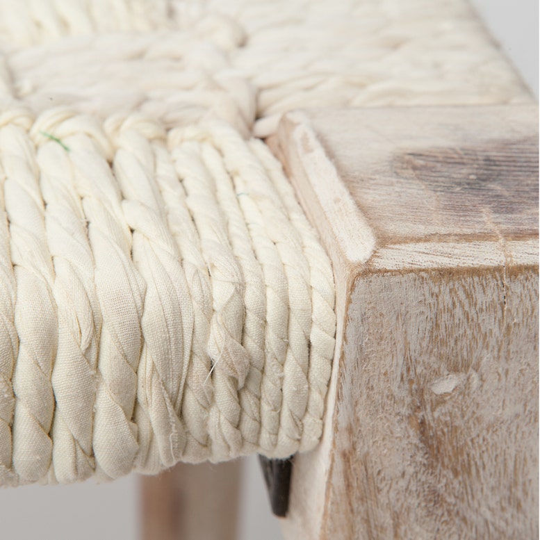 Vintage saris add hints of color into the white fabric seat of our Nico bench. A statement piece that is feminine, stylish and reclaimed.