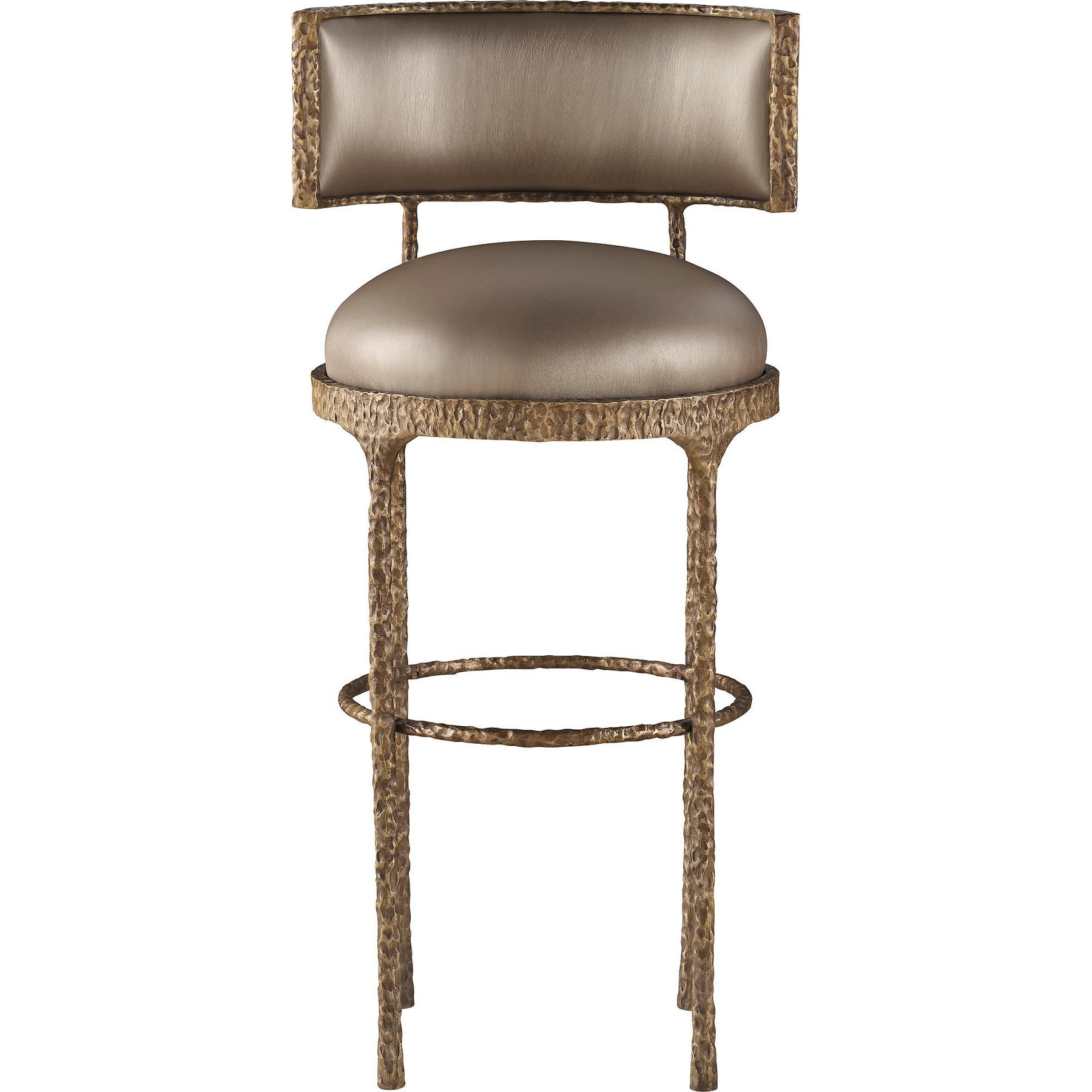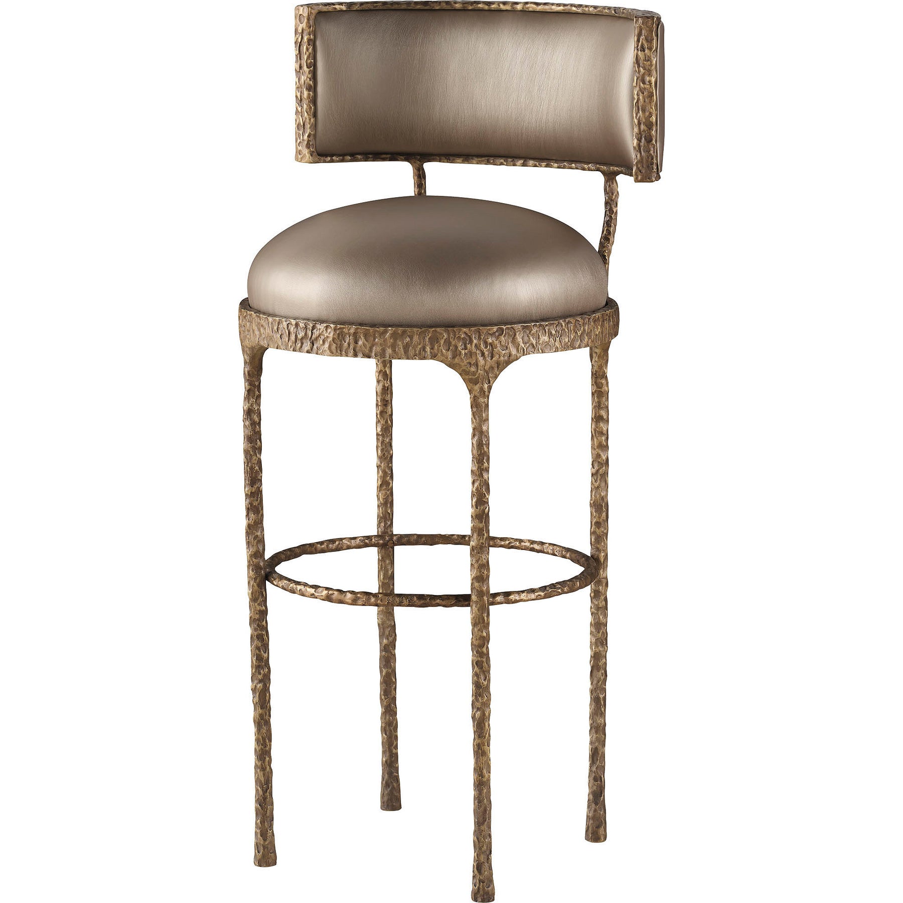 The Pollara Barstool is a stylish option that pairs a bronze plated finish on cast aluminum with elevated upholstery. Named for the ancient Sicilian island lost to a volcanic eruption, its classic and fluid form represents the solidity of quickly cooled earth following a lava flow.