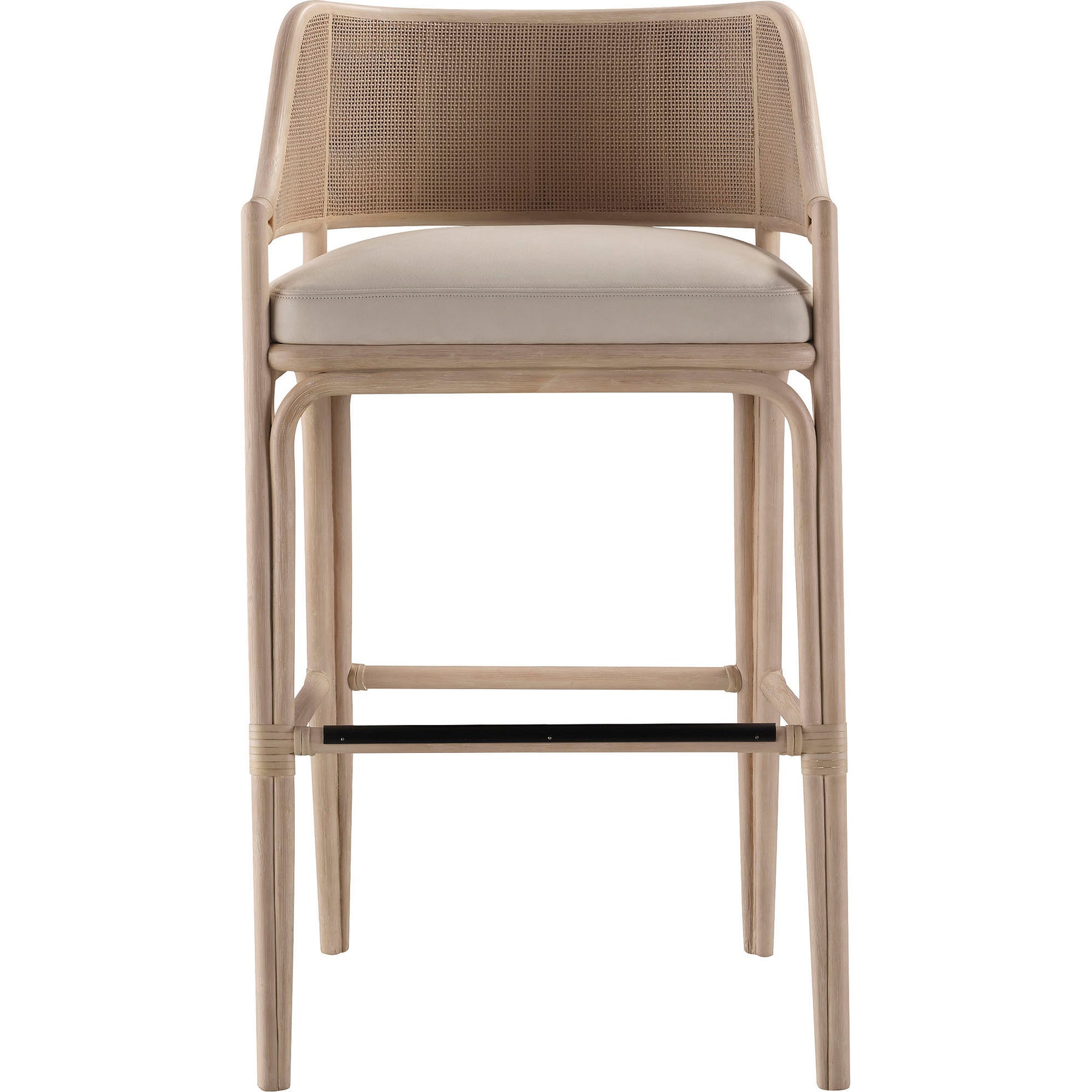 With a graceful form, beautiful materials and a lightweight design that is easy to pull closer for meals or conversation, the Repose Barstool will become an instant favorite in your home. A rattan frame and woven square mesh cane pair together to create an eminently comfortable stool with a curved back and upholstered seat.