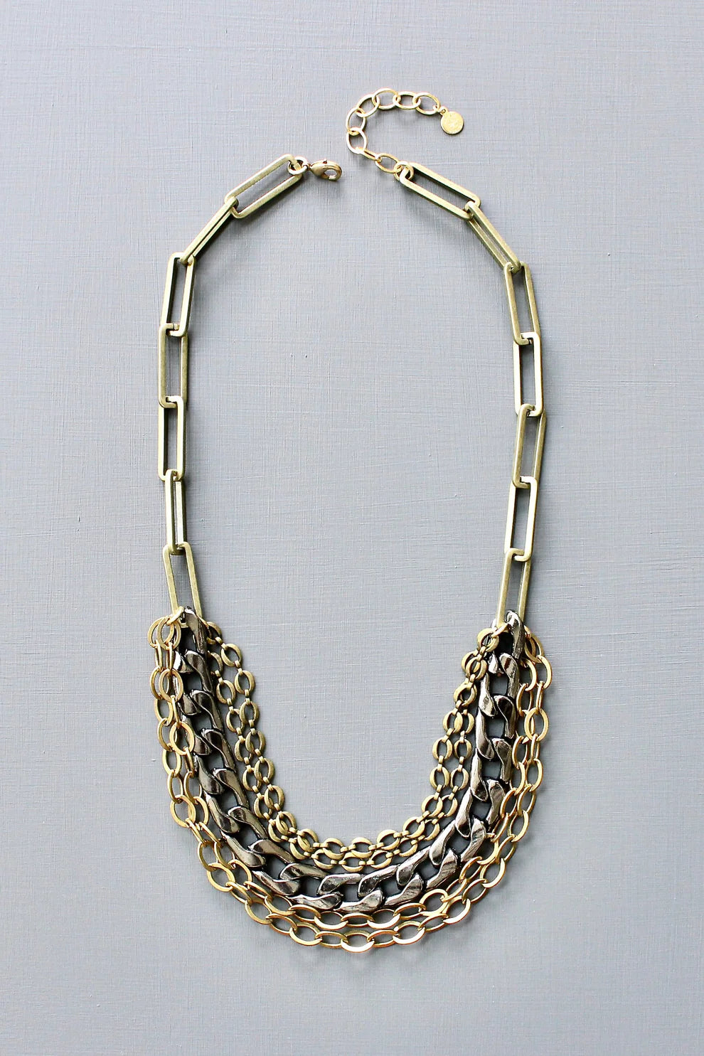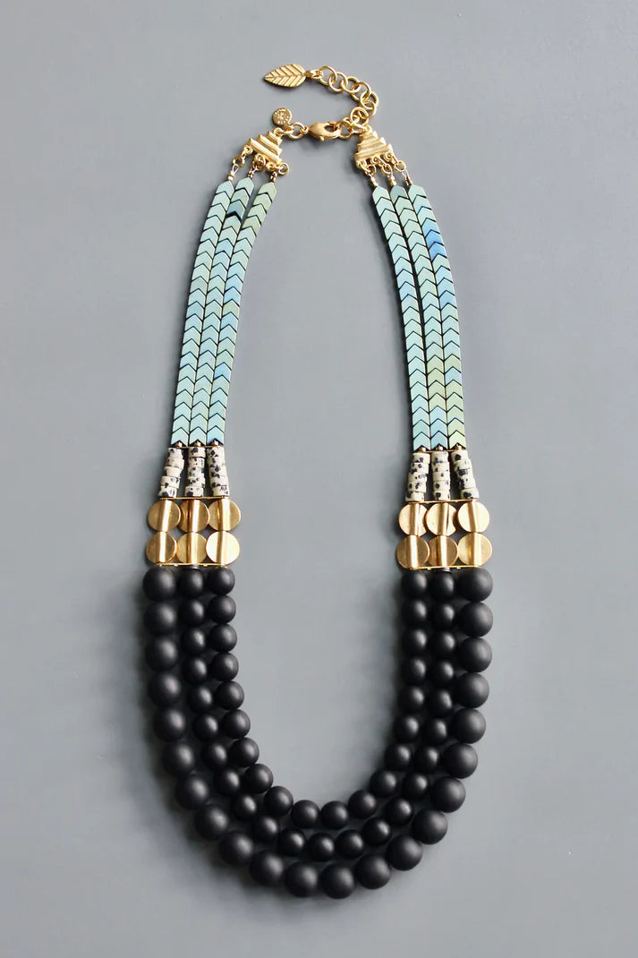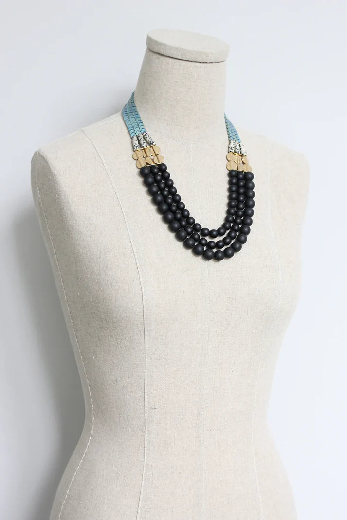 NECKLACE TRIPLE STRAND STONE & AFRICAN GLASS