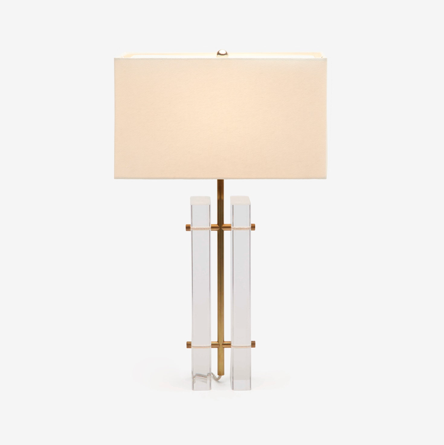 We love the retro future aesthetic of our sculptural Ryan. Inspired by a piece from late-'50s Europe, the lamp features two cut-corner acrylic panels, revealing the structure's simple inner workings. Brass tubing creates the center column of this stunning, see-through piece.