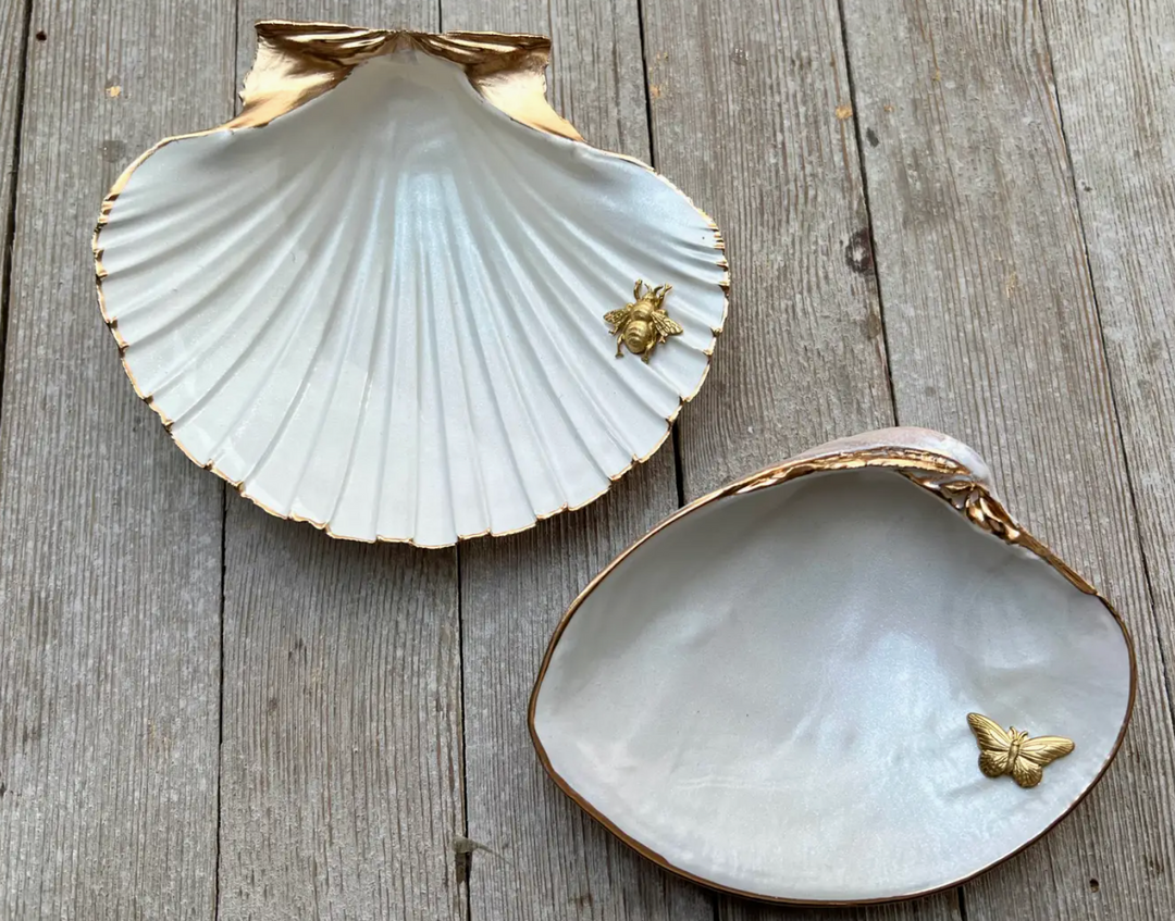 RING DISH PEARL WITH GOLD TRIM CLAM