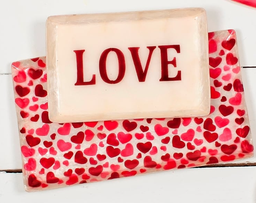 TRAY RED/WHITE CAPIZ SHELL LOVE #62160