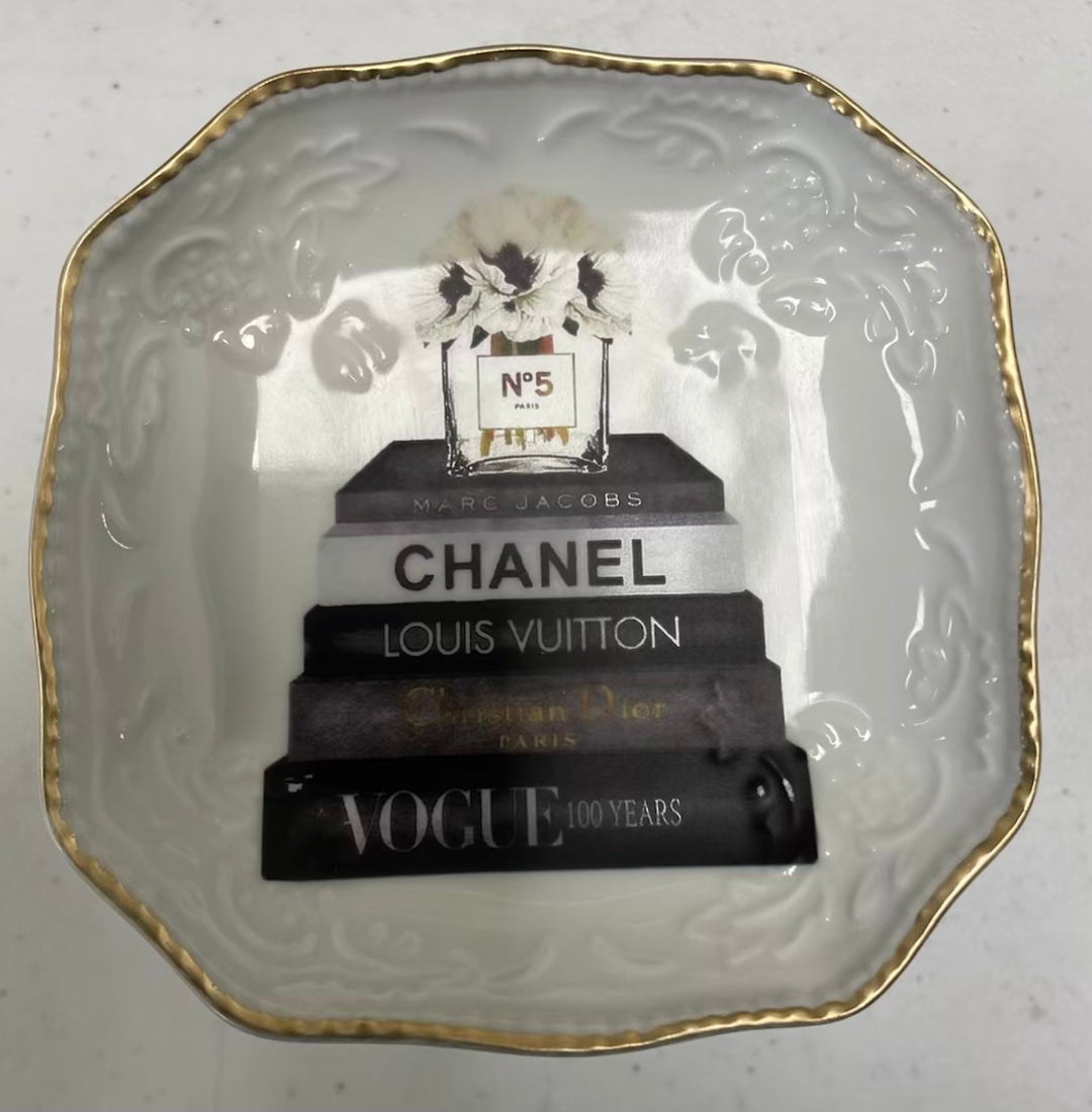 JEWELRY DISH ROUND WITH GOLD ACCENT