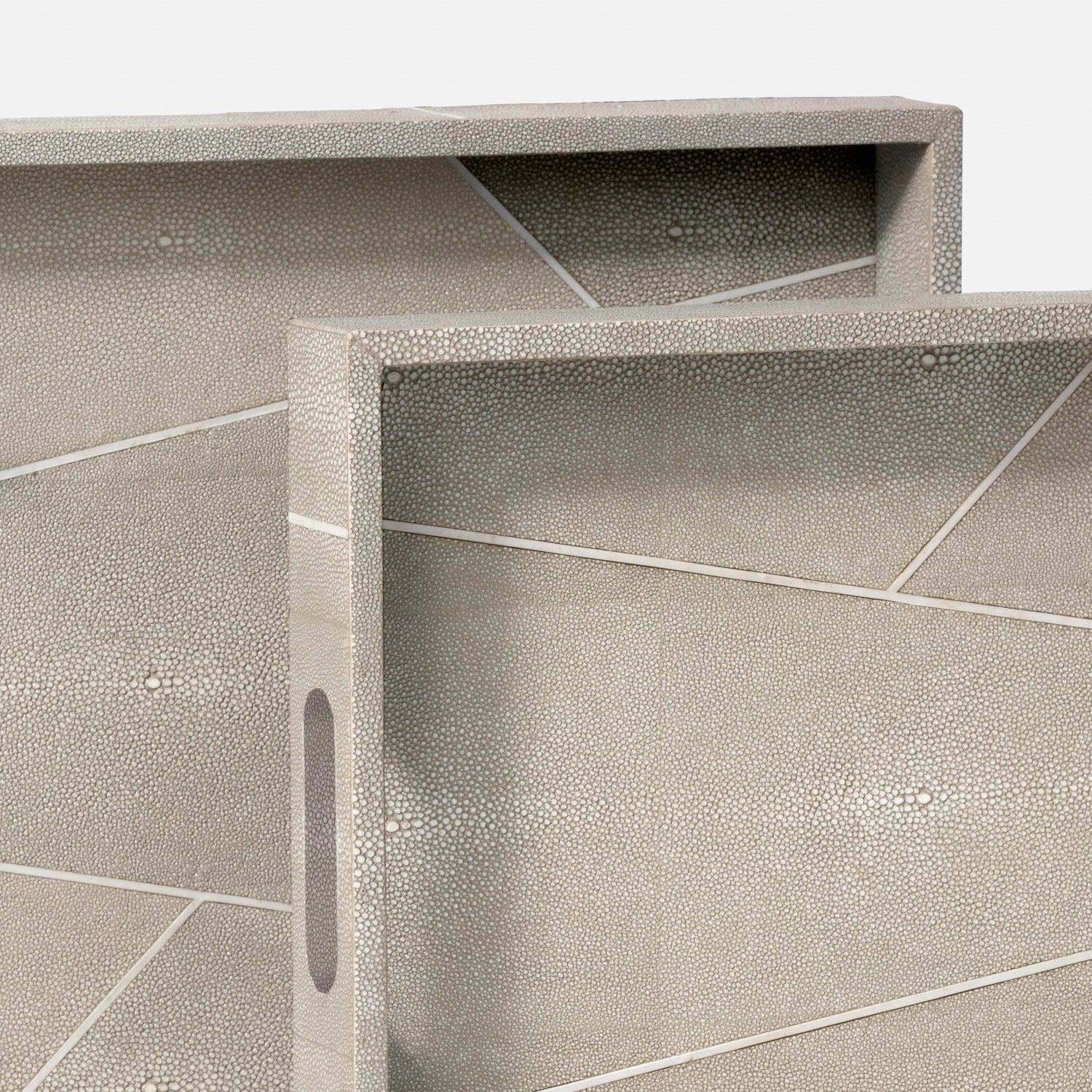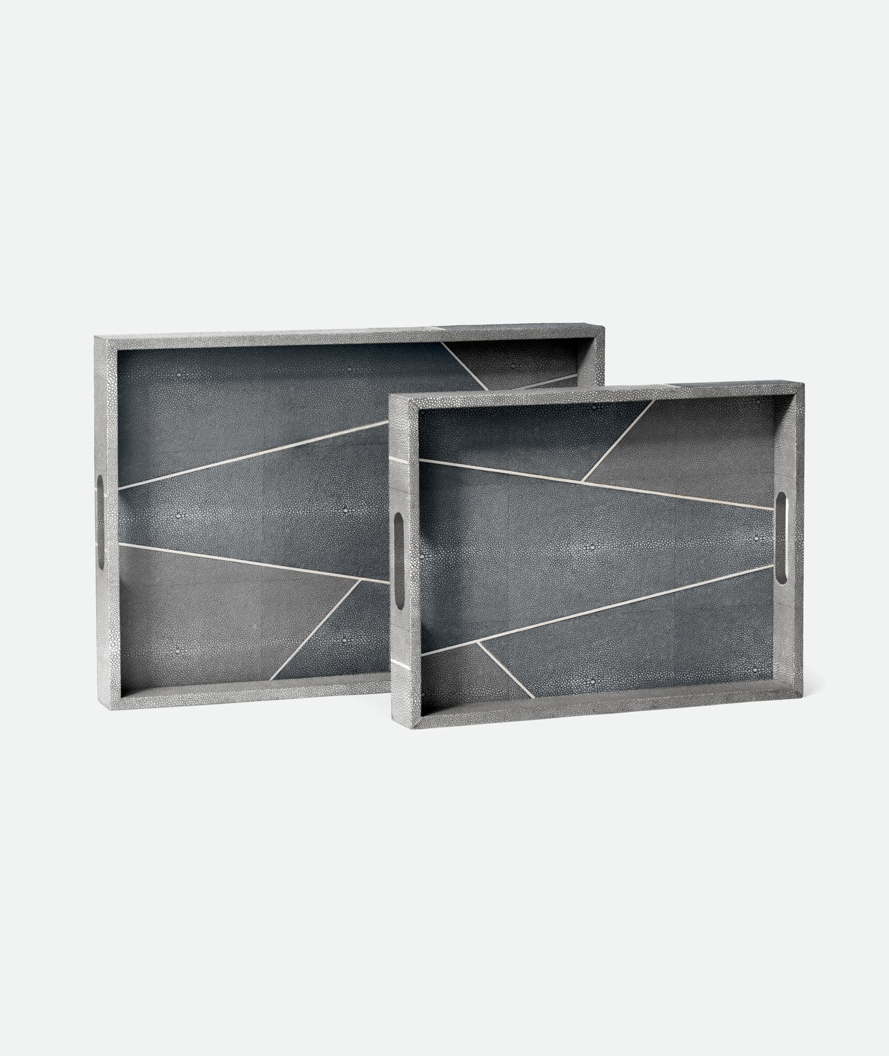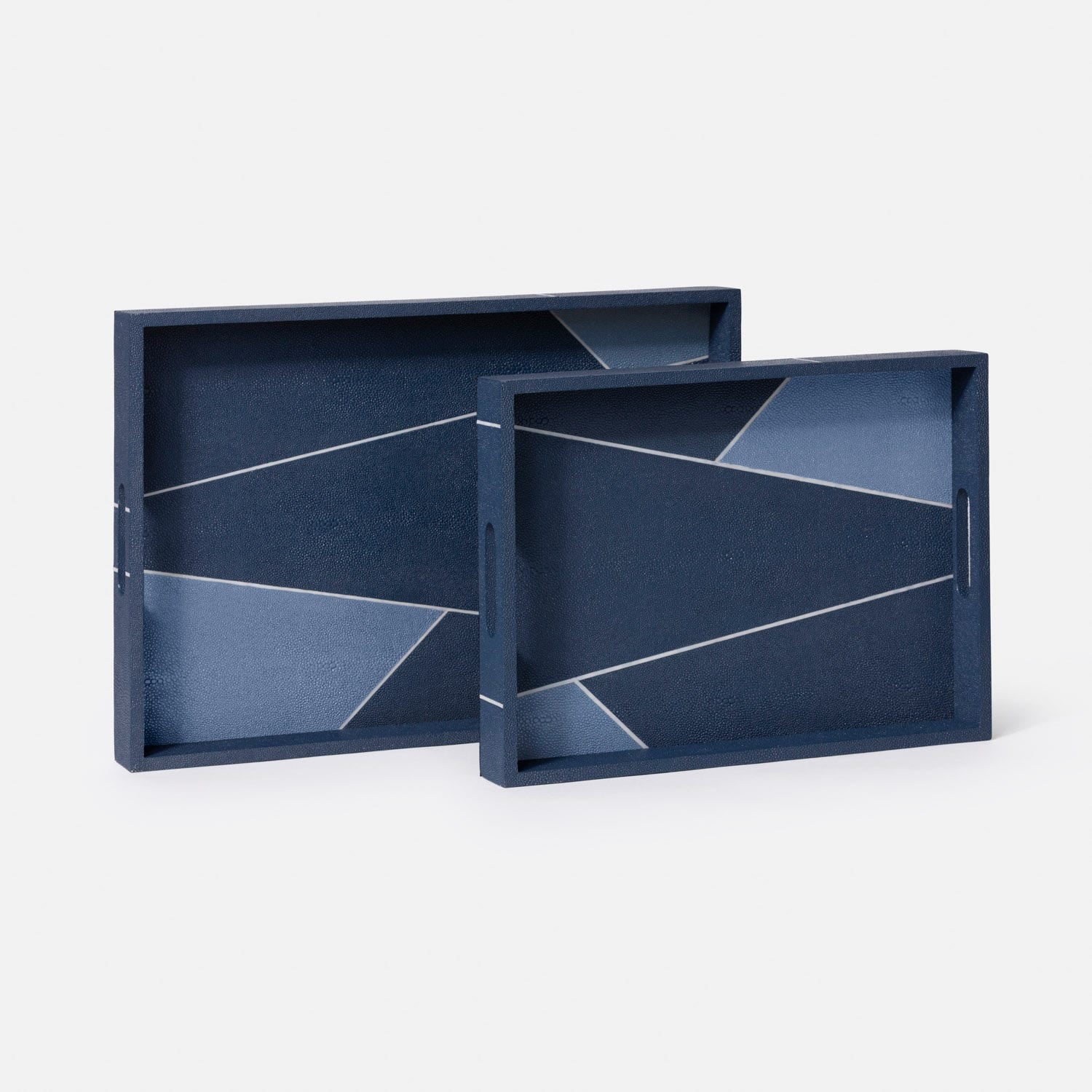 Inspired by classic Art Deco design, we mixed multiple colors of our one-of-a-kind faux shagreen with a faux bone trim. Our attention to detail and thoughtful proportions create a statement making tray set in the Breck.