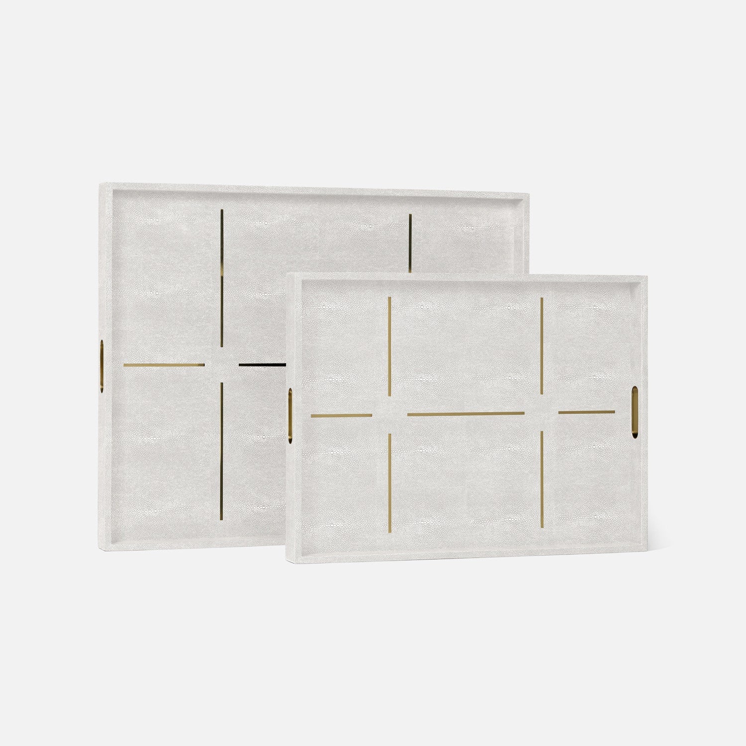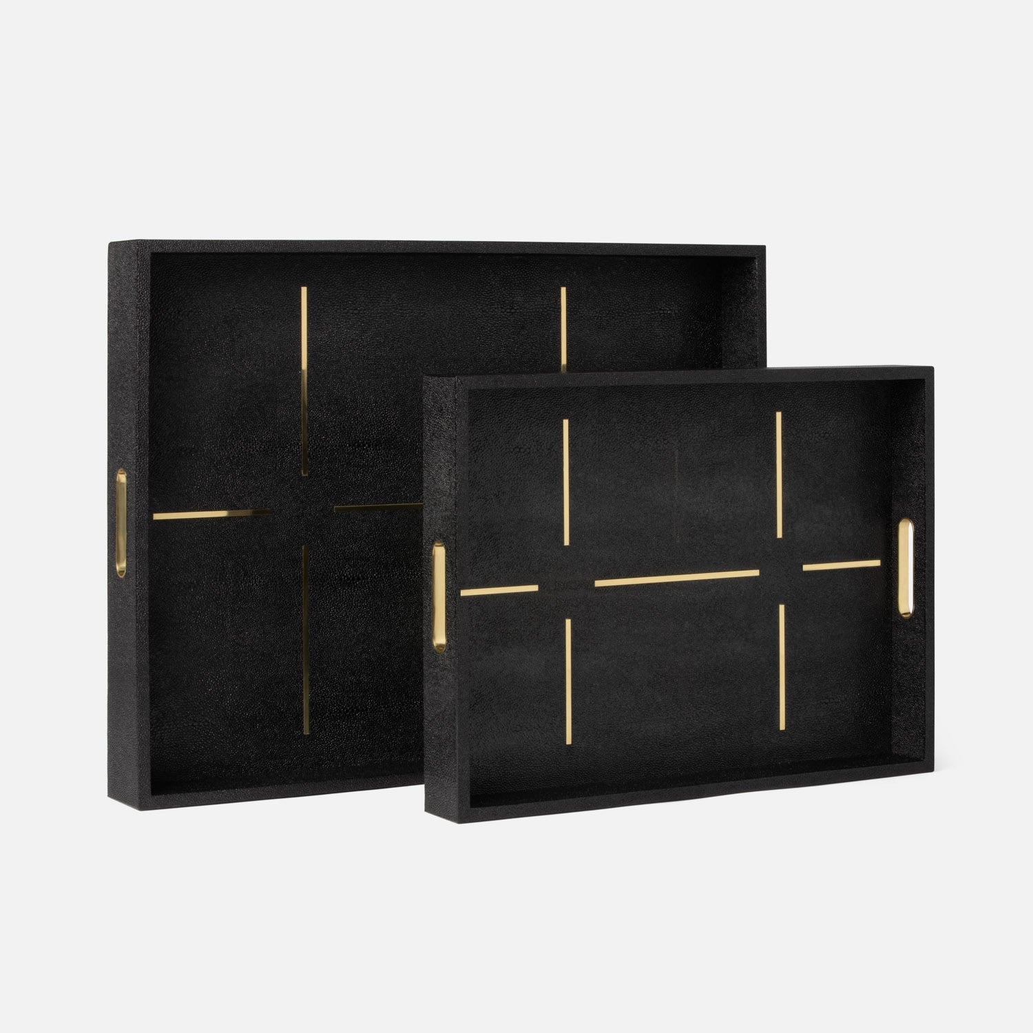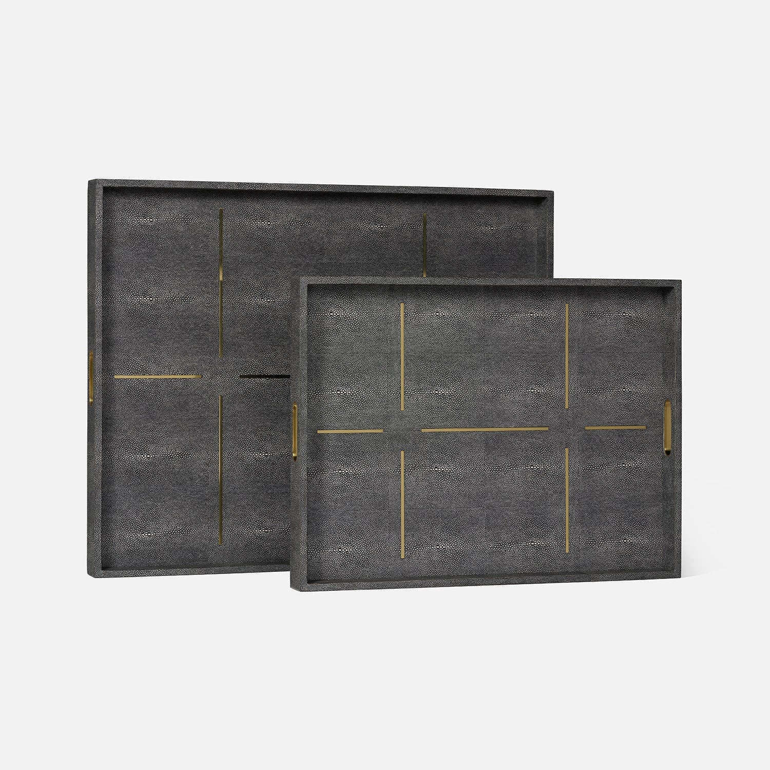 Faux shagreen tray with linear inset brass design and handles - now available in extra-large sizes.