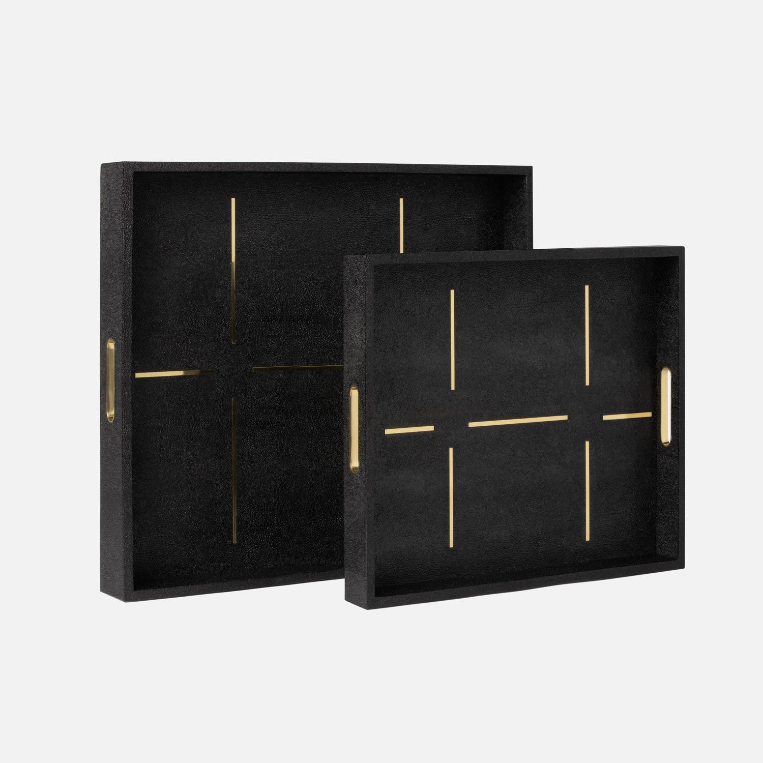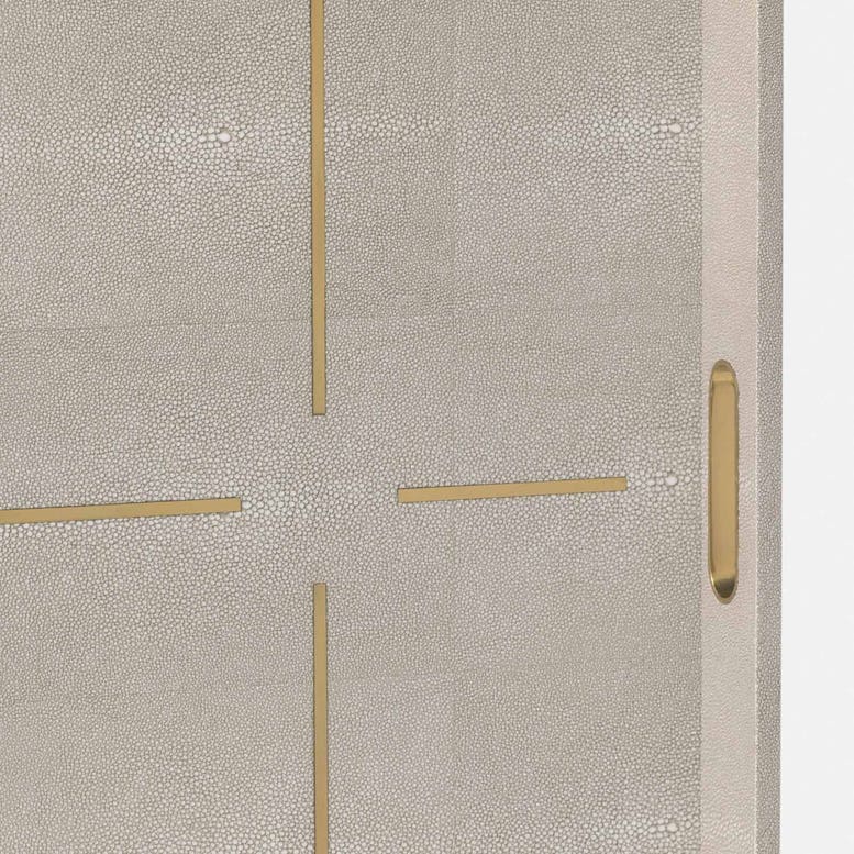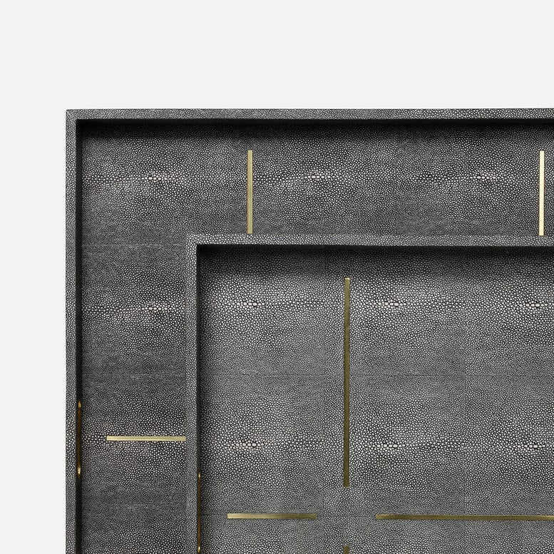Faux shagreen tray with linear inset brass design and handles - now available in extra-large sizes.