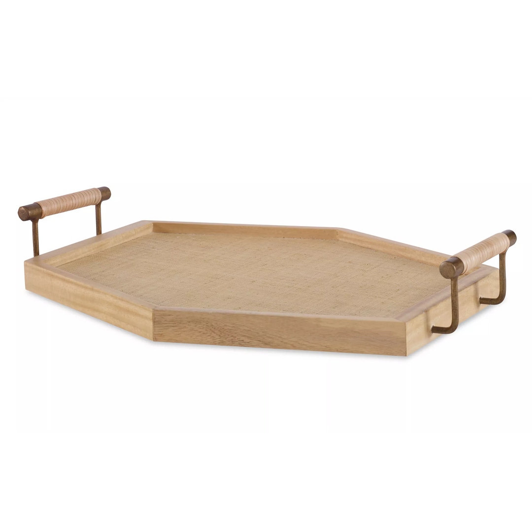 TRAY NATURAL WOOD & RAFFIA W/ HANDLES (NRD) #61476