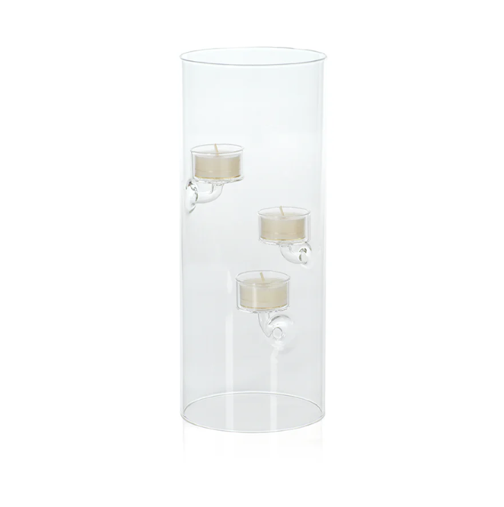 CANDLE HOLDER CLEAR LINED GLASS (Available in 2 Sizes)