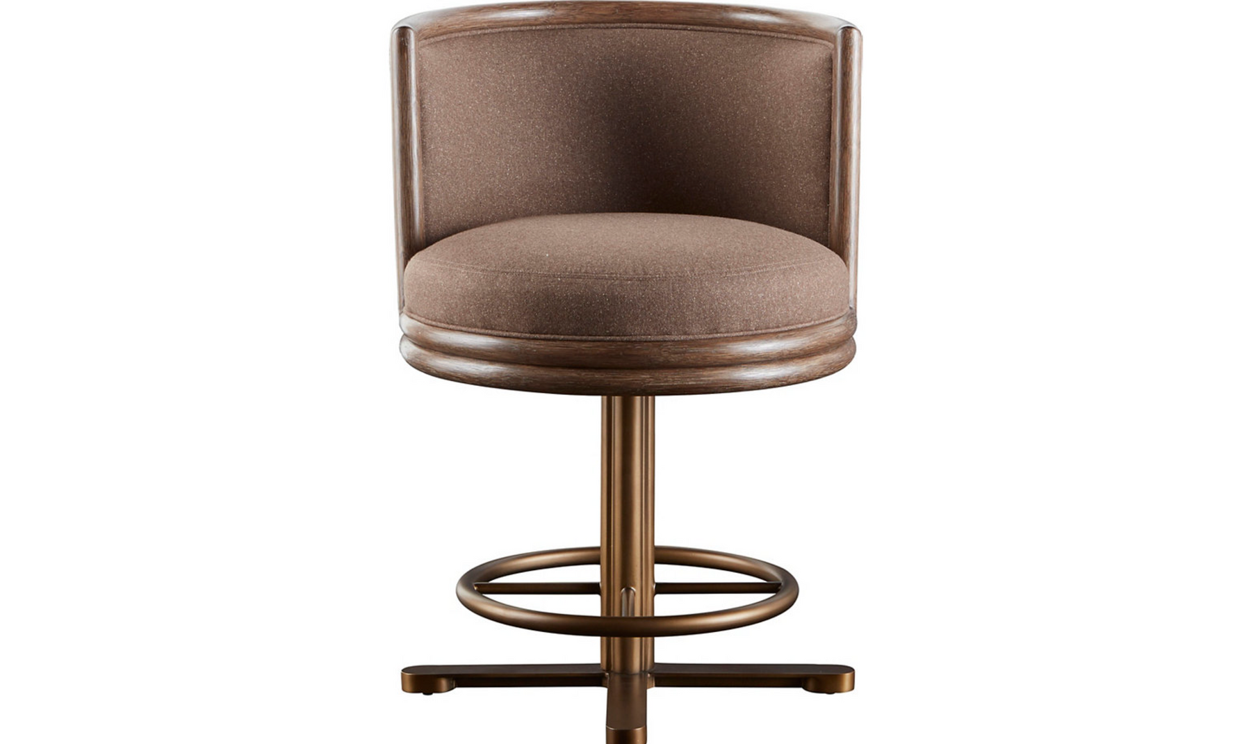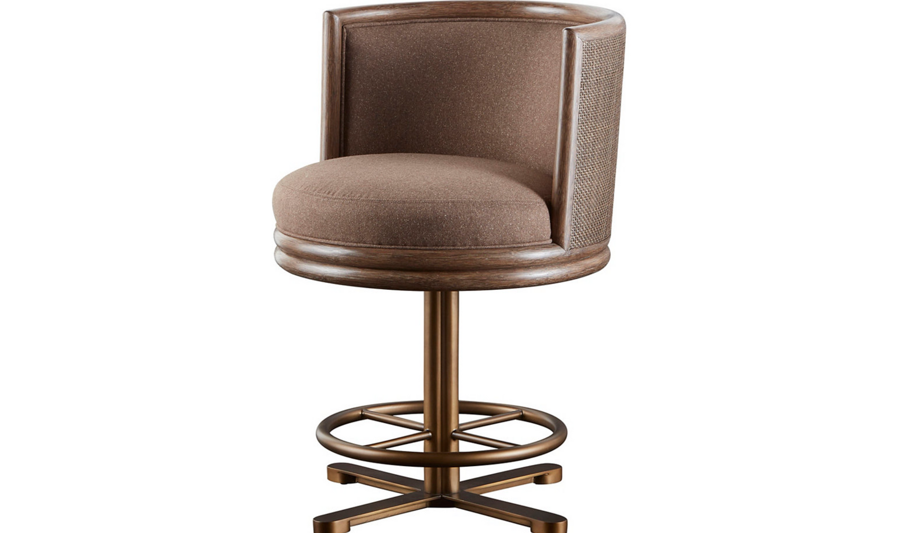 Purity of form and durability of material define this counter height rattan stool. A 180-degree swivel allows easy access to the fully upholstered seat.