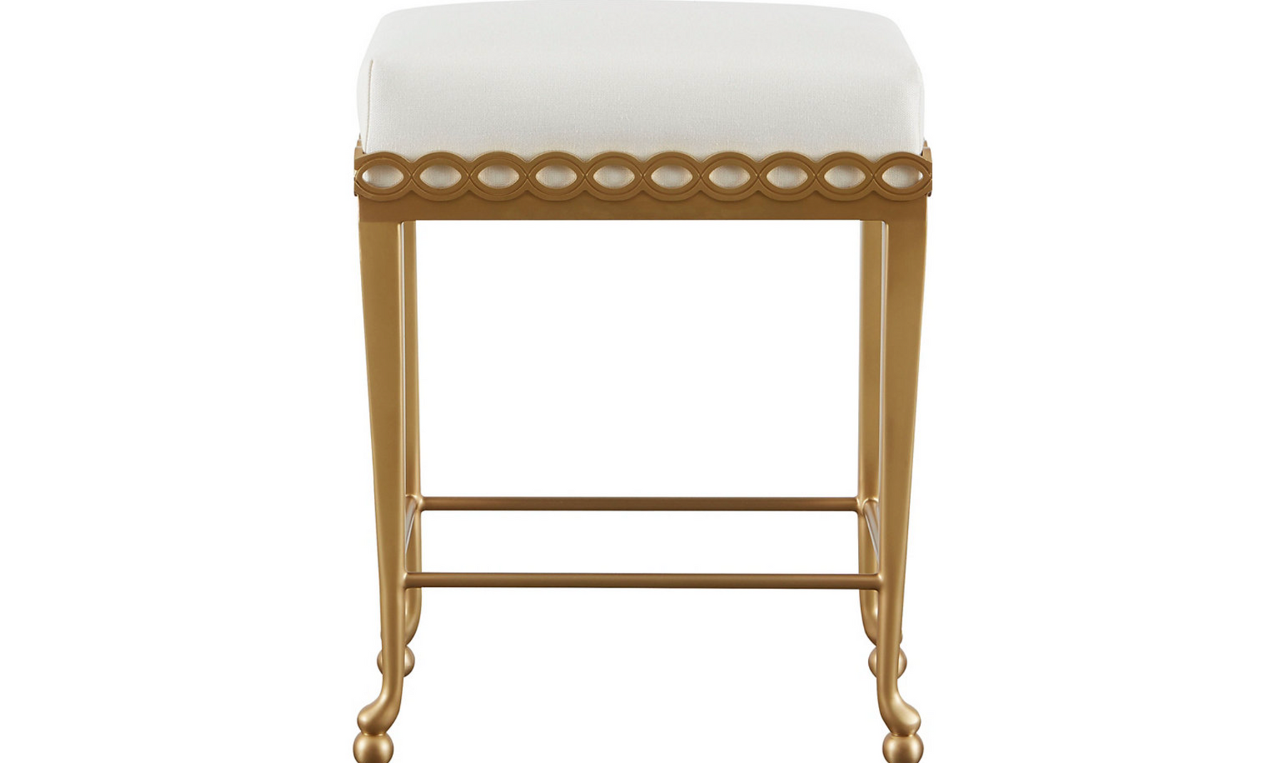 With a sinuous bronze frame and simple pin-cushion seat, the Infinity Counter Stool is an alluring piece inspired by delicate lace detailing.