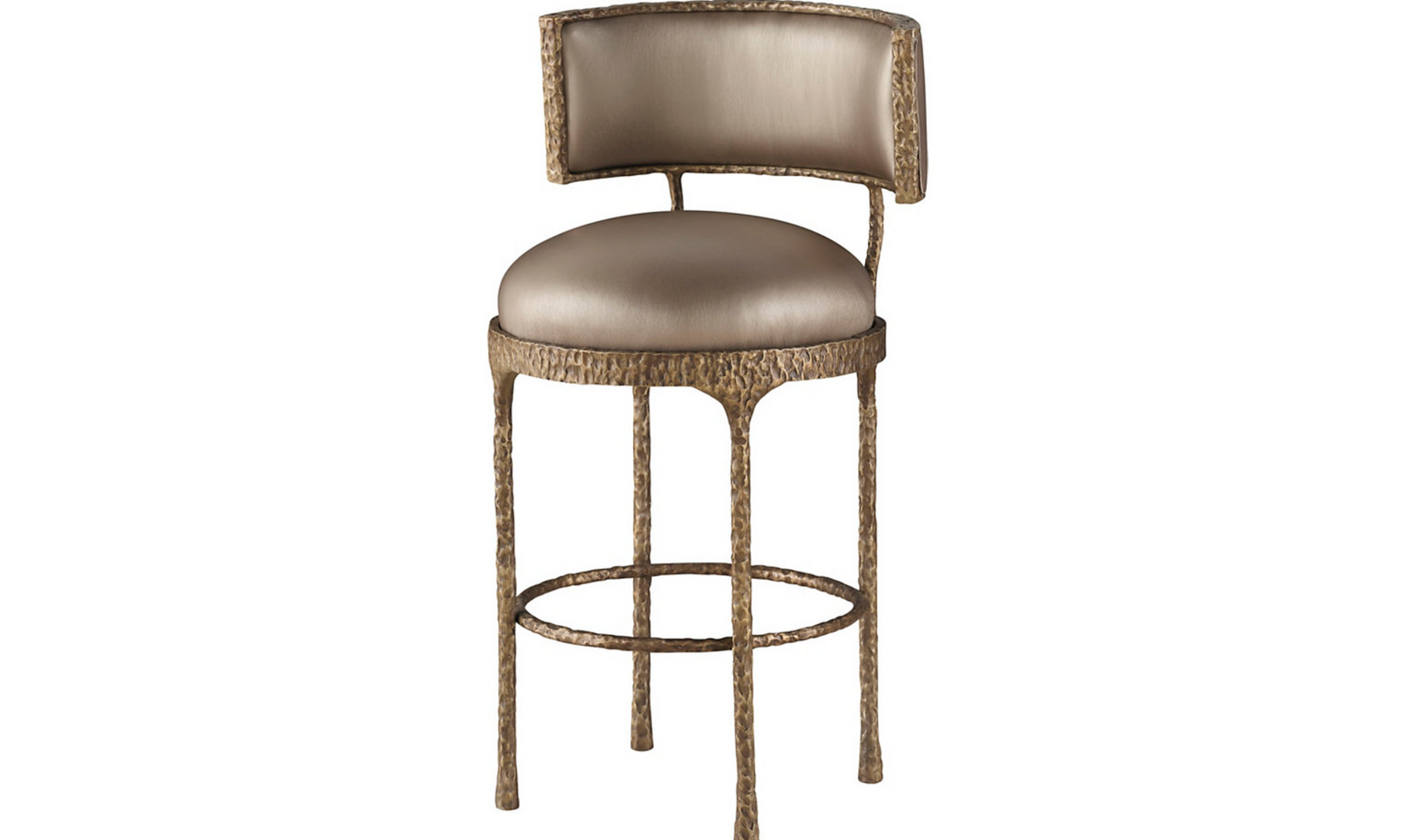 The Pollara Counter Stool is a stylish option that pairs a bronze plated finish on cast aluminum with elevated upholstery. Named for the ancient Sicilian island lost to a volcanic eruption, its classic and fluid form represents the solidity of quickly cooled earth following a lava flow.