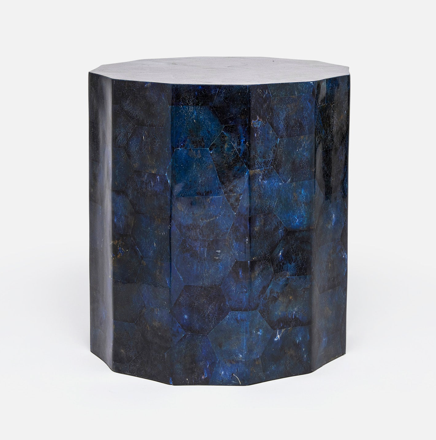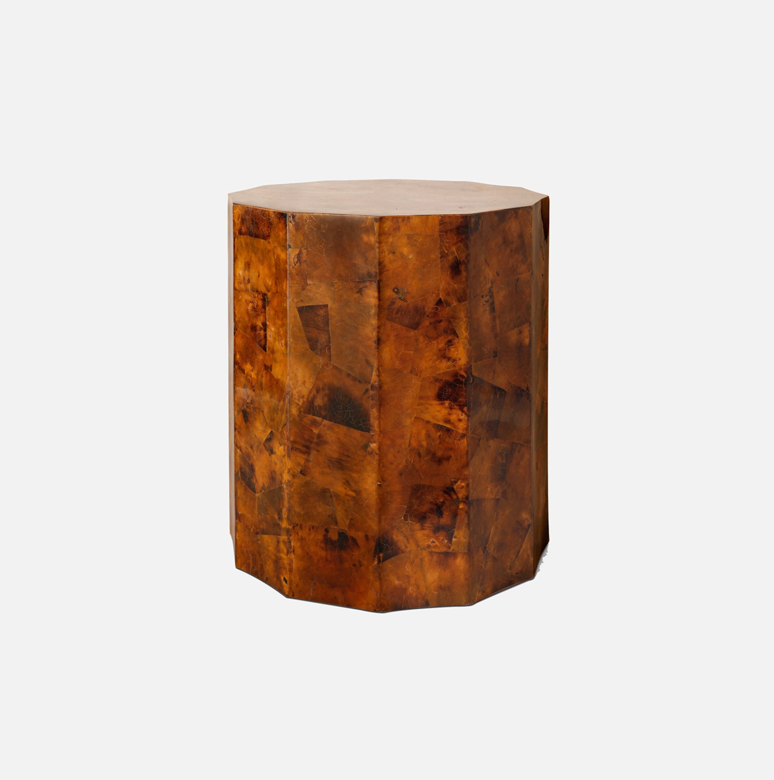 Shell is heat-molded into a lovely table. The piece is faceted and highlights the natural color variation of the shell.
