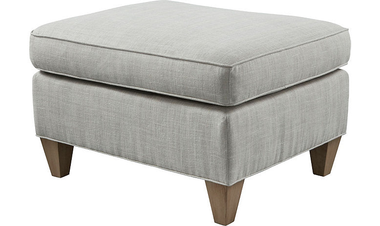 This ottoman has an attached Baker Comfort seat above an optional waterfall skirt detailed with side pleats.