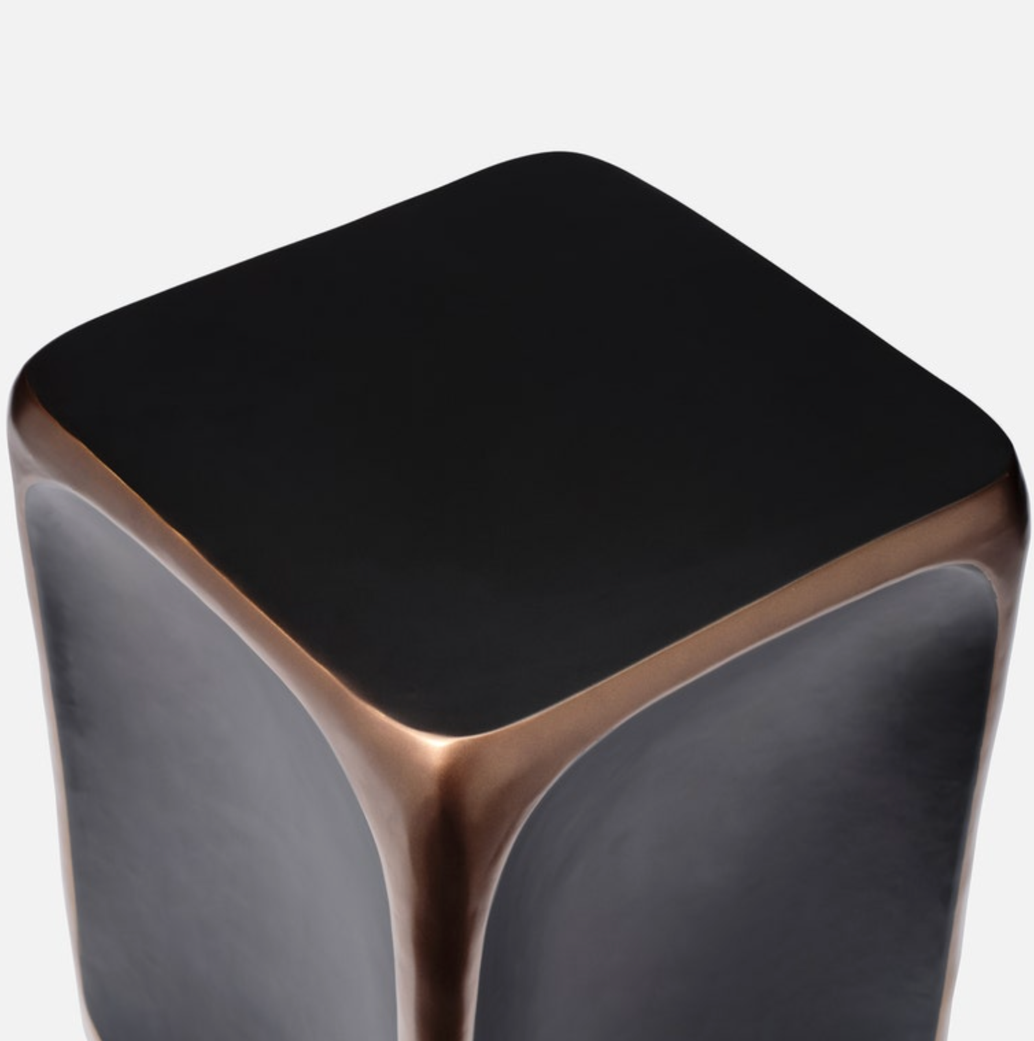 A rectangular prism meets refined simplicity with the ultra-modern Lloyd stool. Featuring a hollow iron construction and a sleek, shaded finish, it's a geometric statement piece that's both functional and fascinating.