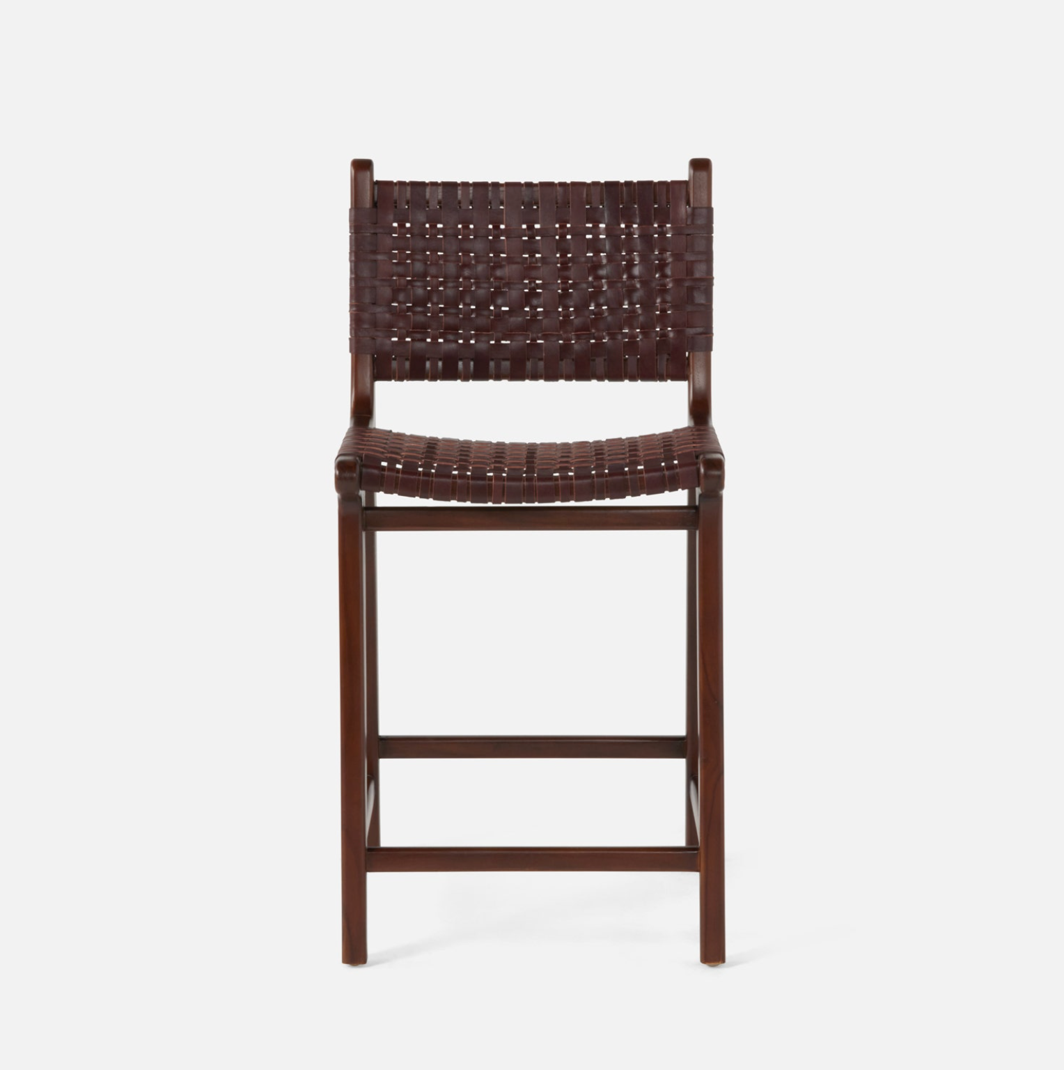 Exquisite woven full-grain leather paired with polished mindi or teak wood make our Percy a refined and sturdy counter stool. This versatile style-with a broad woven backrest-is also available as a bar stool, counter stool, and bench.
