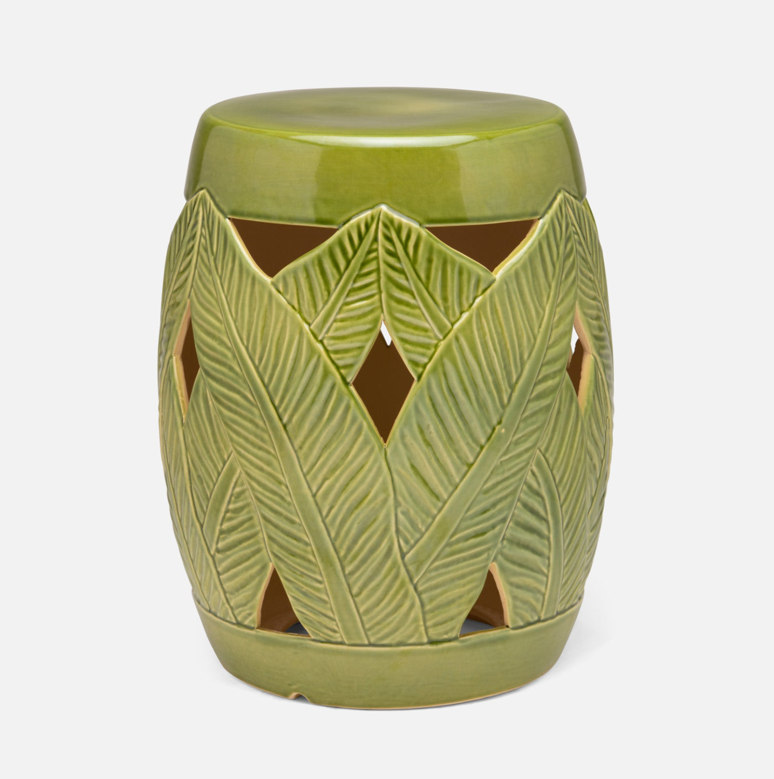 Three hand-glazed finishes in a perfect proportion complement the open and airy leaf motif of the Rosalba Stool, which allows light and shadow to pass through.