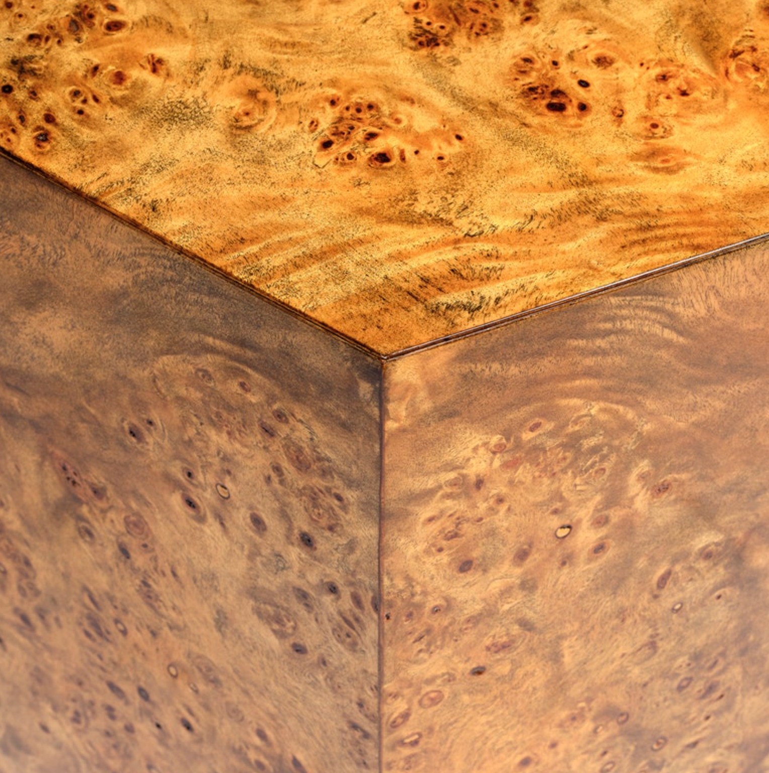 The Stephan stools are crafted from timeless poplar burl and finished with an elegant dark stain, ensuring no two are exactly the same. The hexagonal shape and unique pattern lend refined yet unfussy elegance. Due to the unique patterns of the material, natural variation is to be expected.