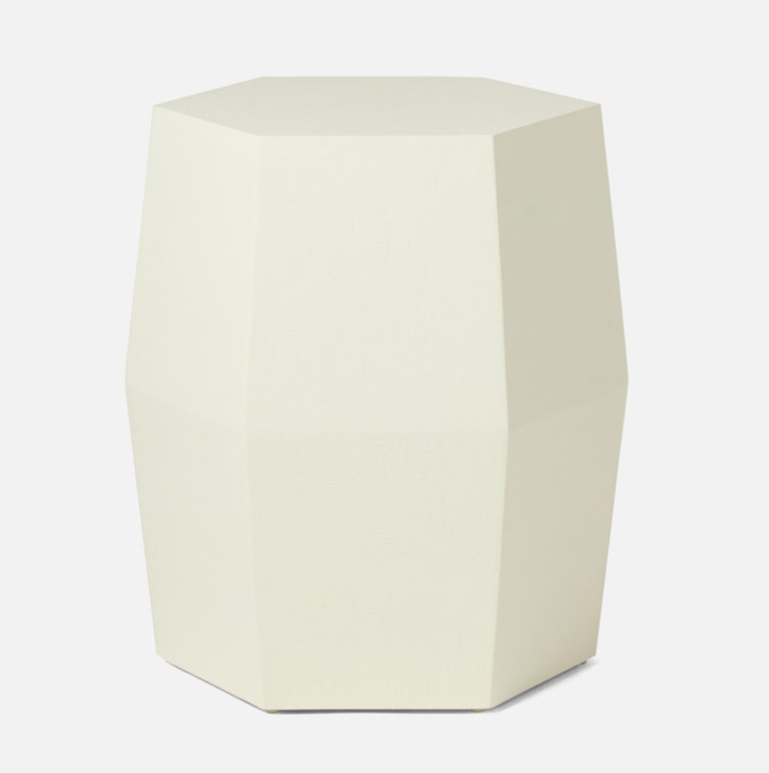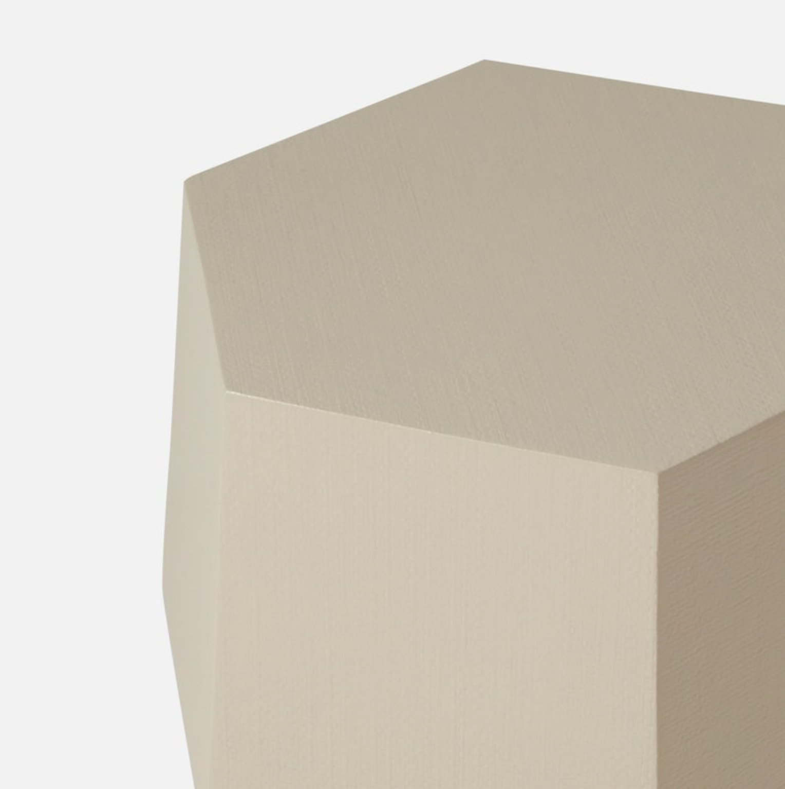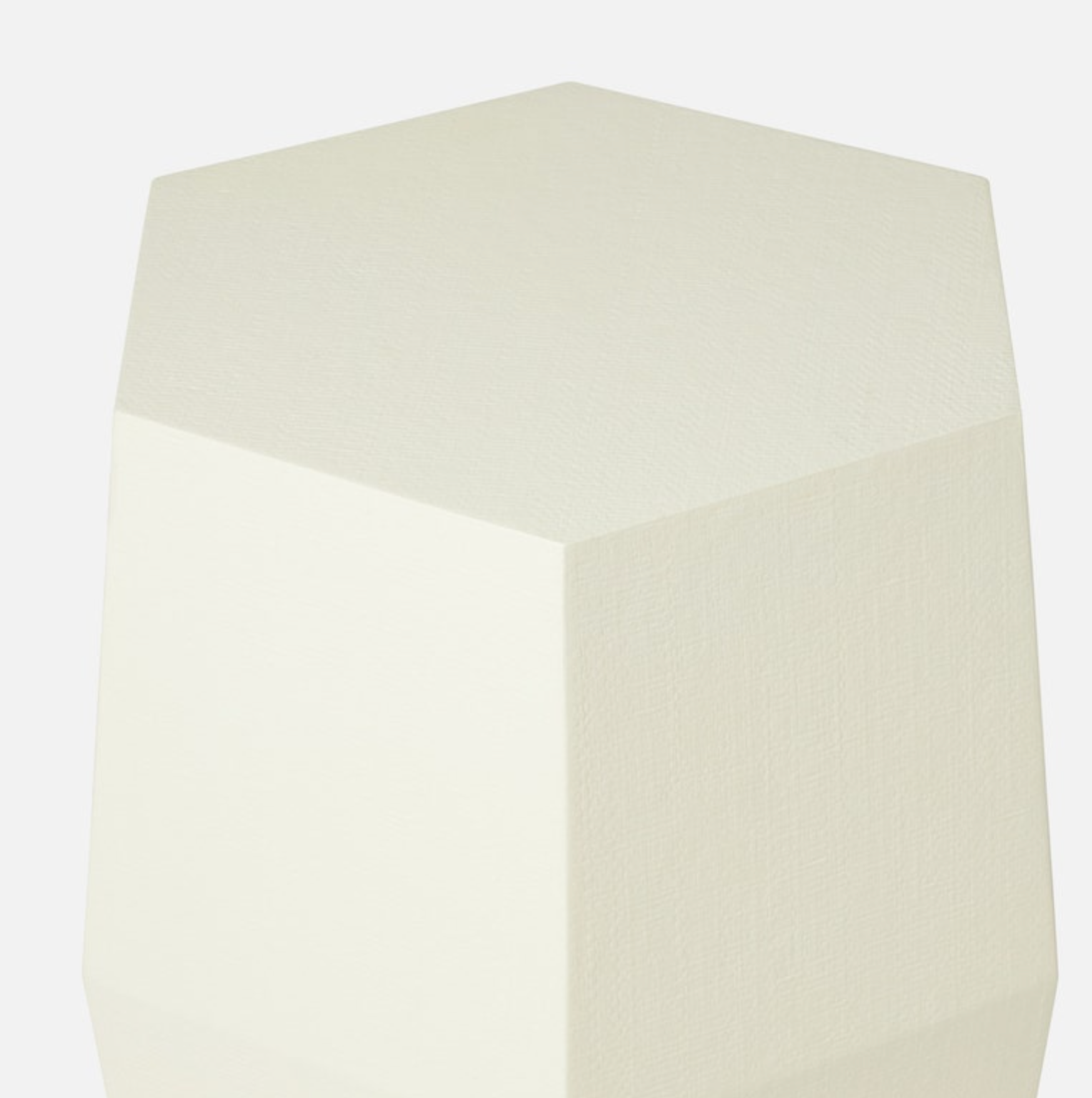The modern hexagonal shape of the Sutton is softened by its raffia finish, adding wonderfully detailed texture to an otherwise simple stool or side table.