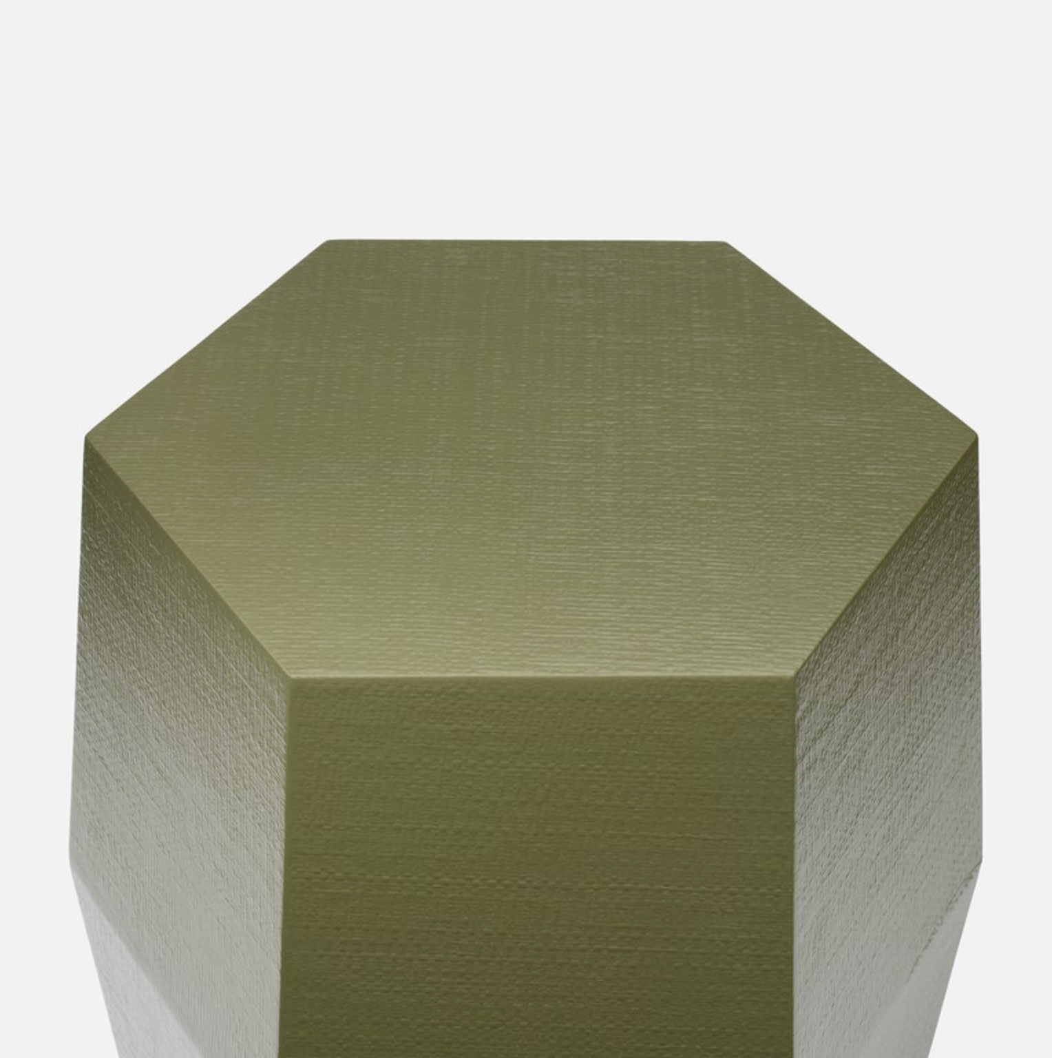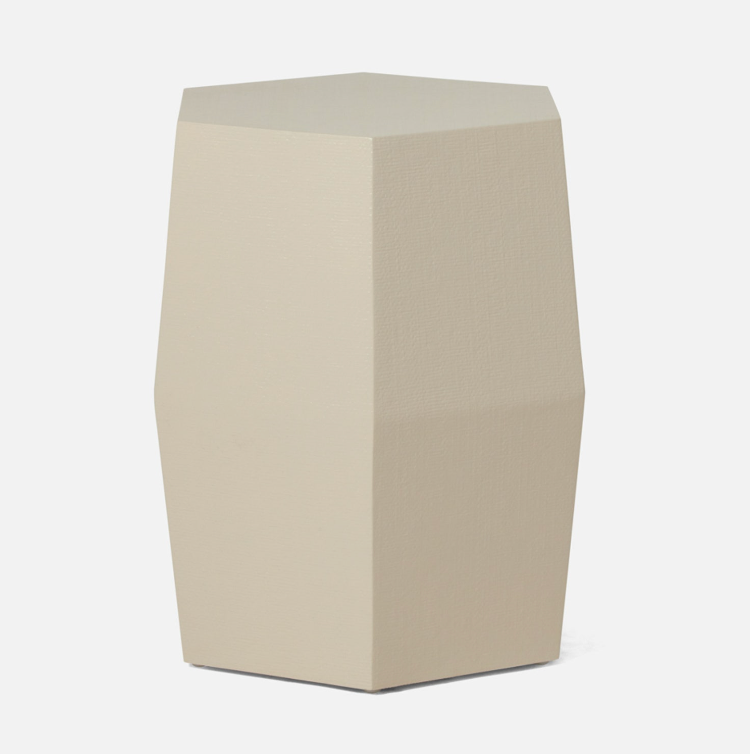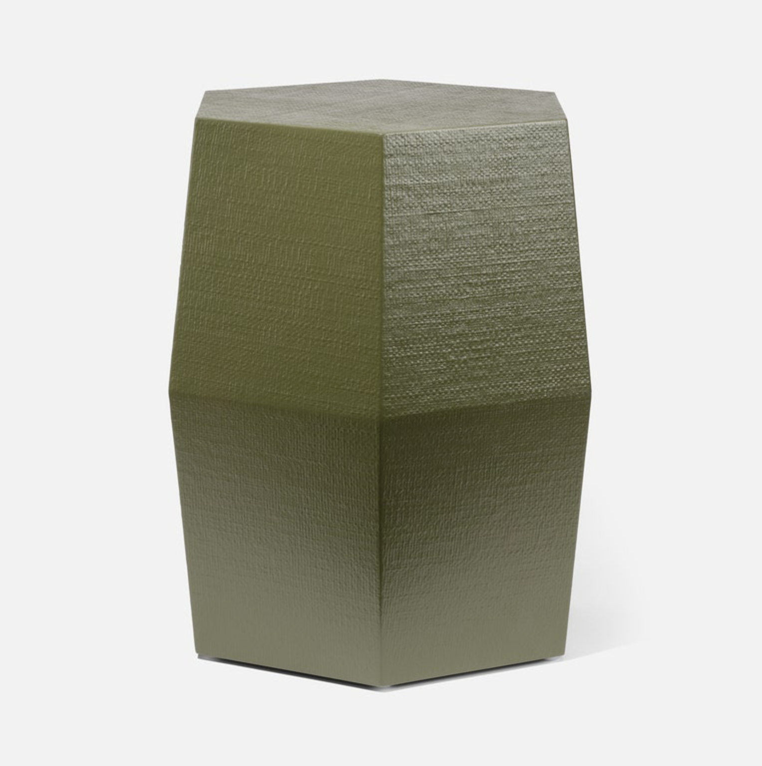 The modern hexagonal shape of the Sutton is softened by its raffia finish, adding wonderfully detailed texture to an otherwise simple stool or side table.