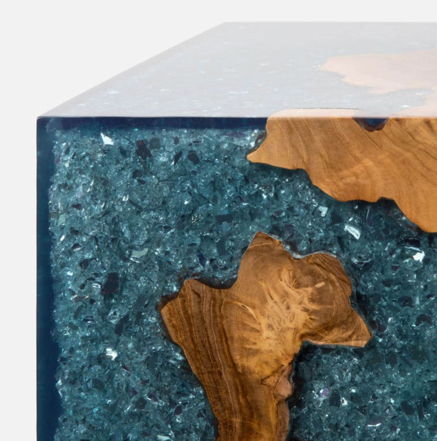 Finishes: Crackled Blue Resin/Natural Teak, Crackled Silver Resin/Natural Teak