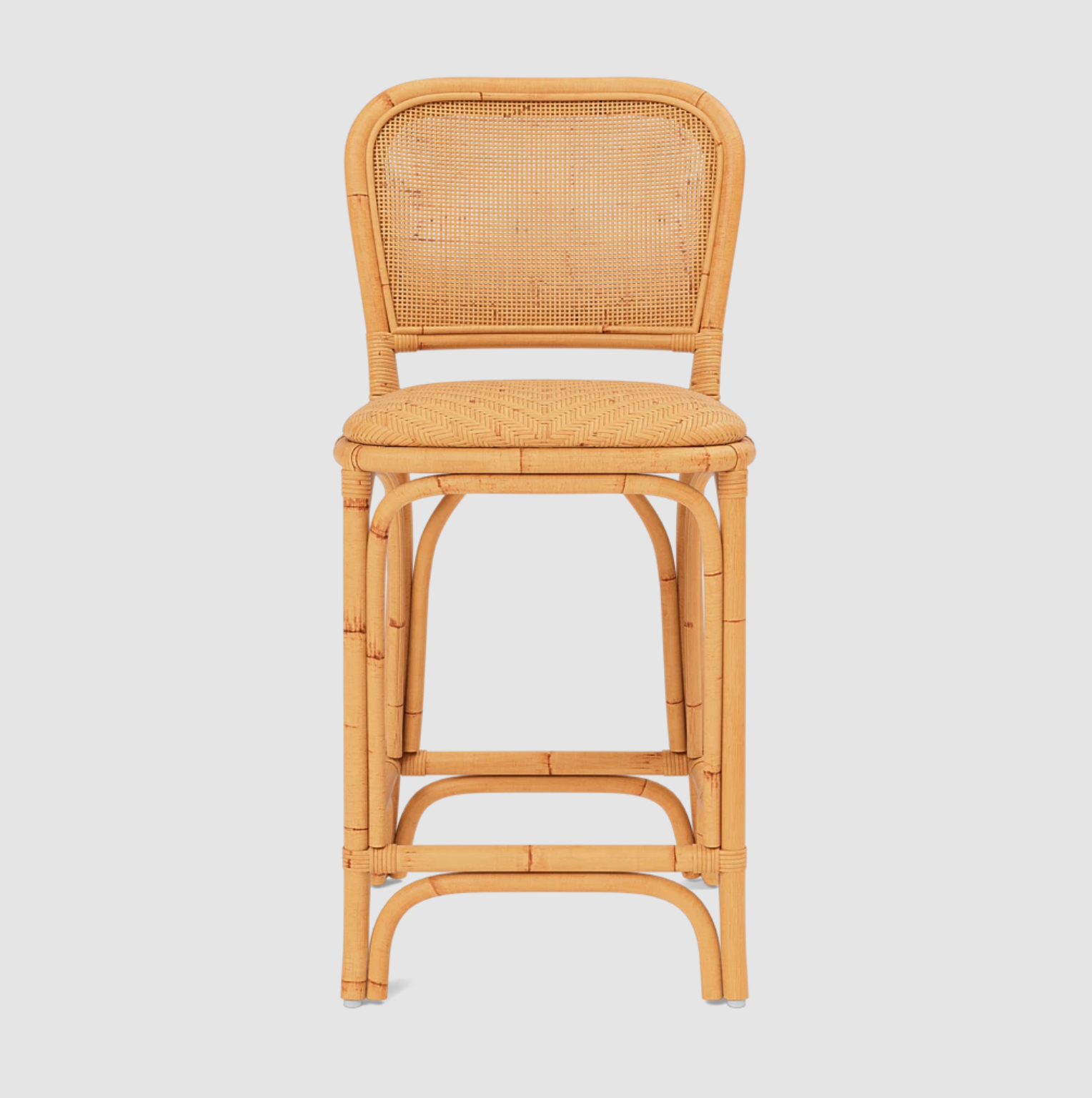 The Tatum elevates the classic rattan bar and counter stool to a more refined status. To complement the rounded and finely woven rattan back, choose a seat in a natural flat rattan, and-woven in an eye-catching chevron pattern.