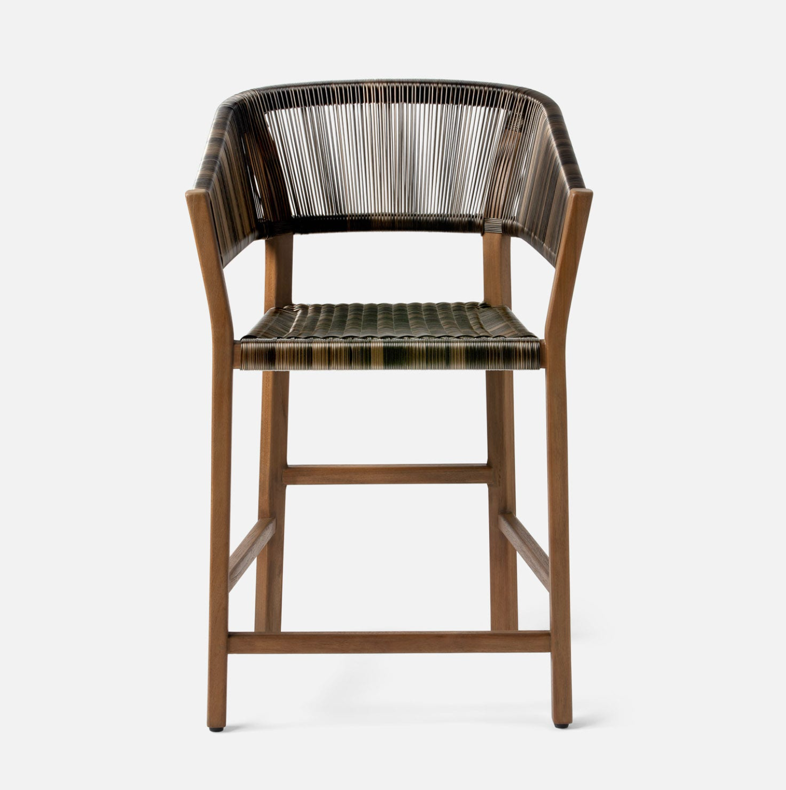 Rooted in Scandinavian design, the Wentworth elevated its inspiration by integrating woven elements, all-weather materials and contemporary proportions. Highly versatile, a dramatic palette of cool brown wood and deep espresso faux rattan lends for a a sophisticated to modern setting.