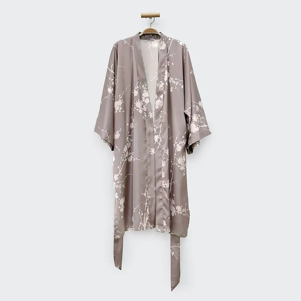 Crafted with refined simplicity, this short kimono robe features delicate floral detailing and an elegant silhouette that moves with natural grace. The relaxed cut and fluid fabric create an understated sophistication perfect for layering or leisurely moments at home.
