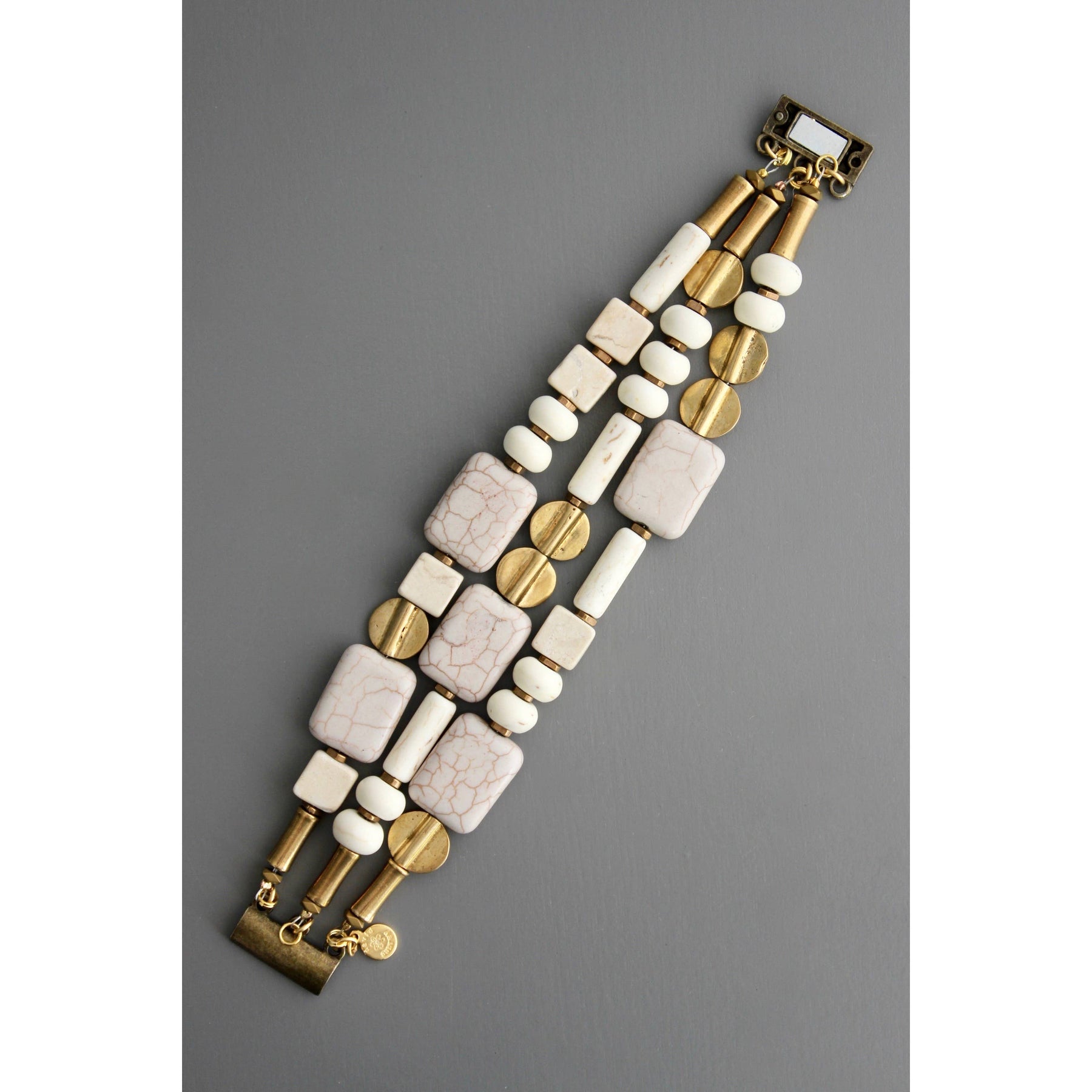 The Triple Strand Bracelet with magnesite and brass. Magnetic closure.