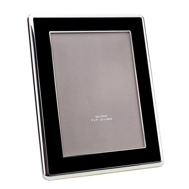 This striking black picture frame features a gently curved silver edge and a generous, wide enamel border. A stylish way to showcase your favorite photos, this frame looks at home in both classic and modern settings.