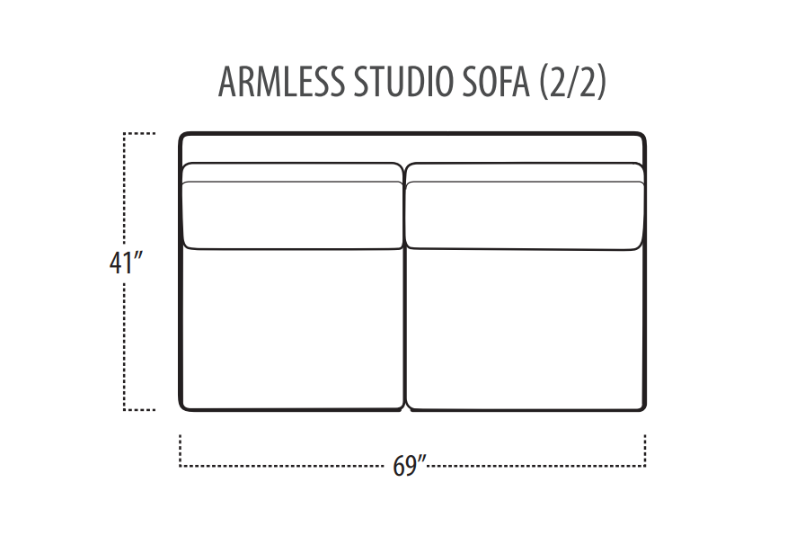 Armless Studio Sofa: 69"W x 41"D x 33"H