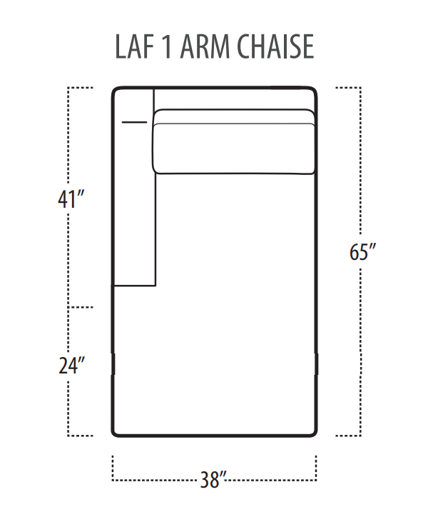 LAF 1 Arm Chaise: 38"W x 65"D x 33"H