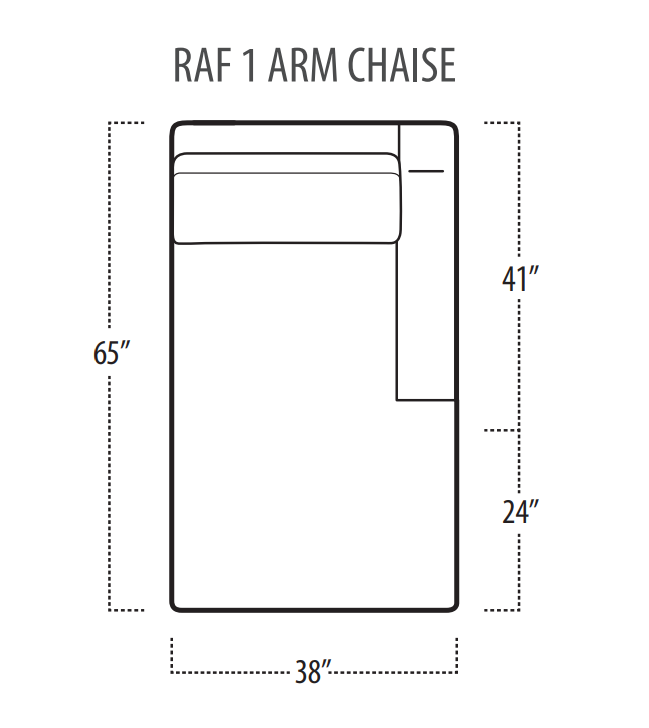 RAF 1 Arm Chaise: 38"W x 65"D x 33"H