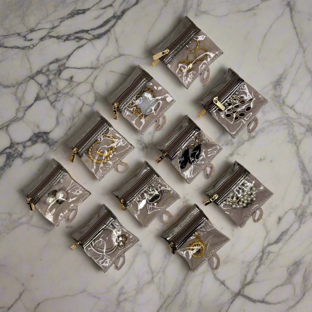 Use for travel - Keep jewelry organized and protected with clear window zippered pouches. Travel with as many as needed. 2 Additional side snap pockets for bangles, watches, and other larger pieces.