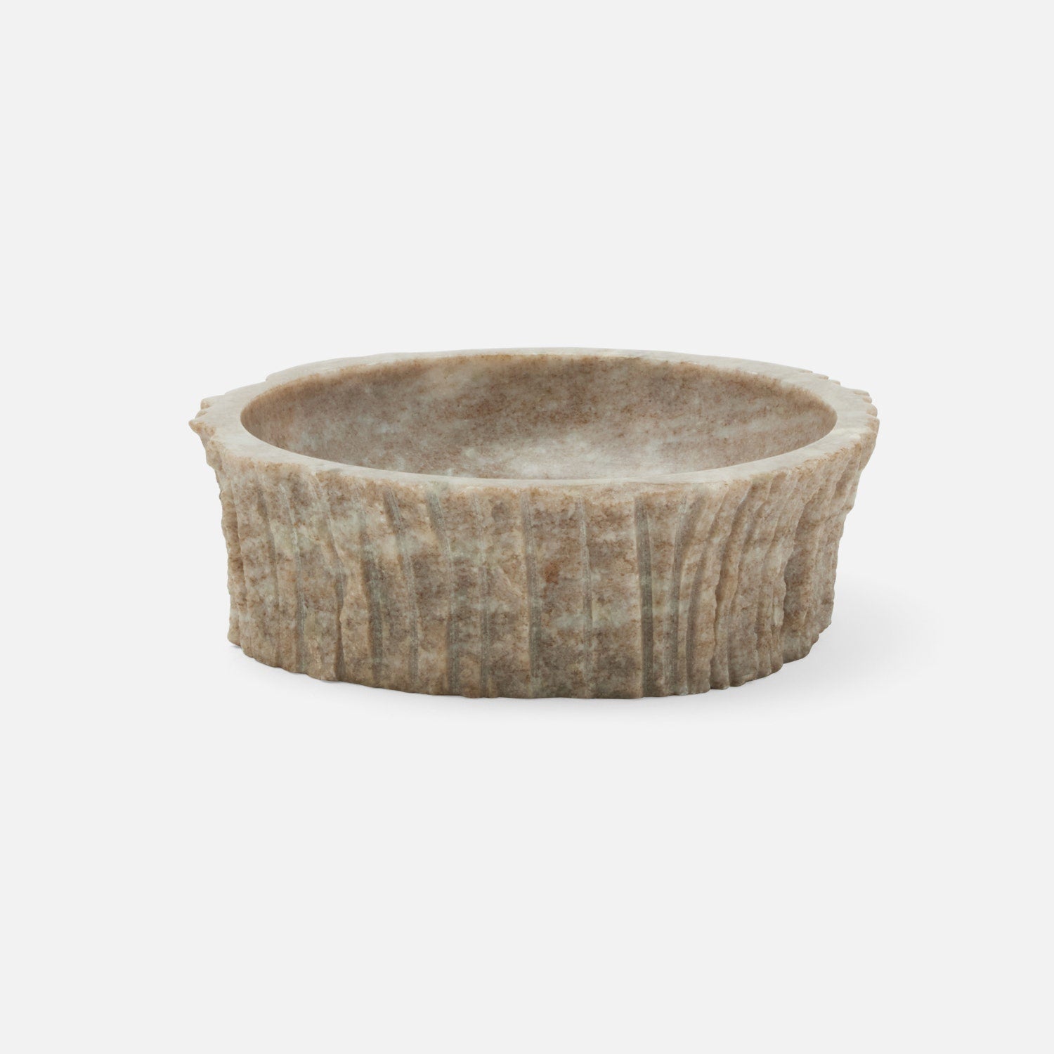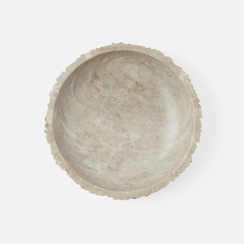 Our Zakai marble bowl has a smooth design that's a little rough around the edges. The bowl's polished interior beautifully contrasts with an imperfectly carved linear texture on the exterior.