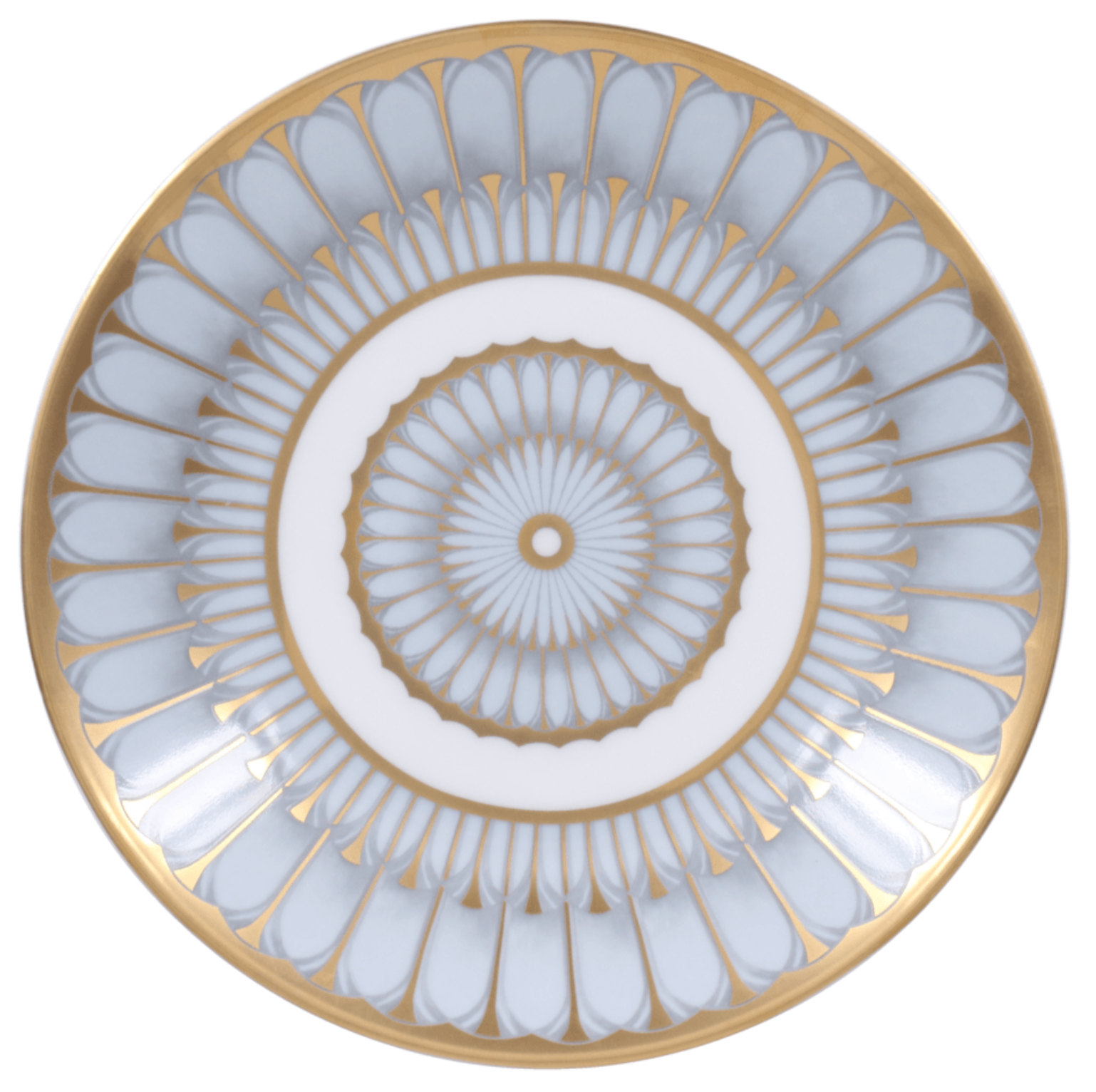 Inspired by Florentine architecture, colonnades of dove-gray glaze and hand-decorated fillets of gold ring this dinner plate with exquisite detail. Pristine white Limoges porcelain complements the refined motif and gives the collection enduring, heirloom quality.