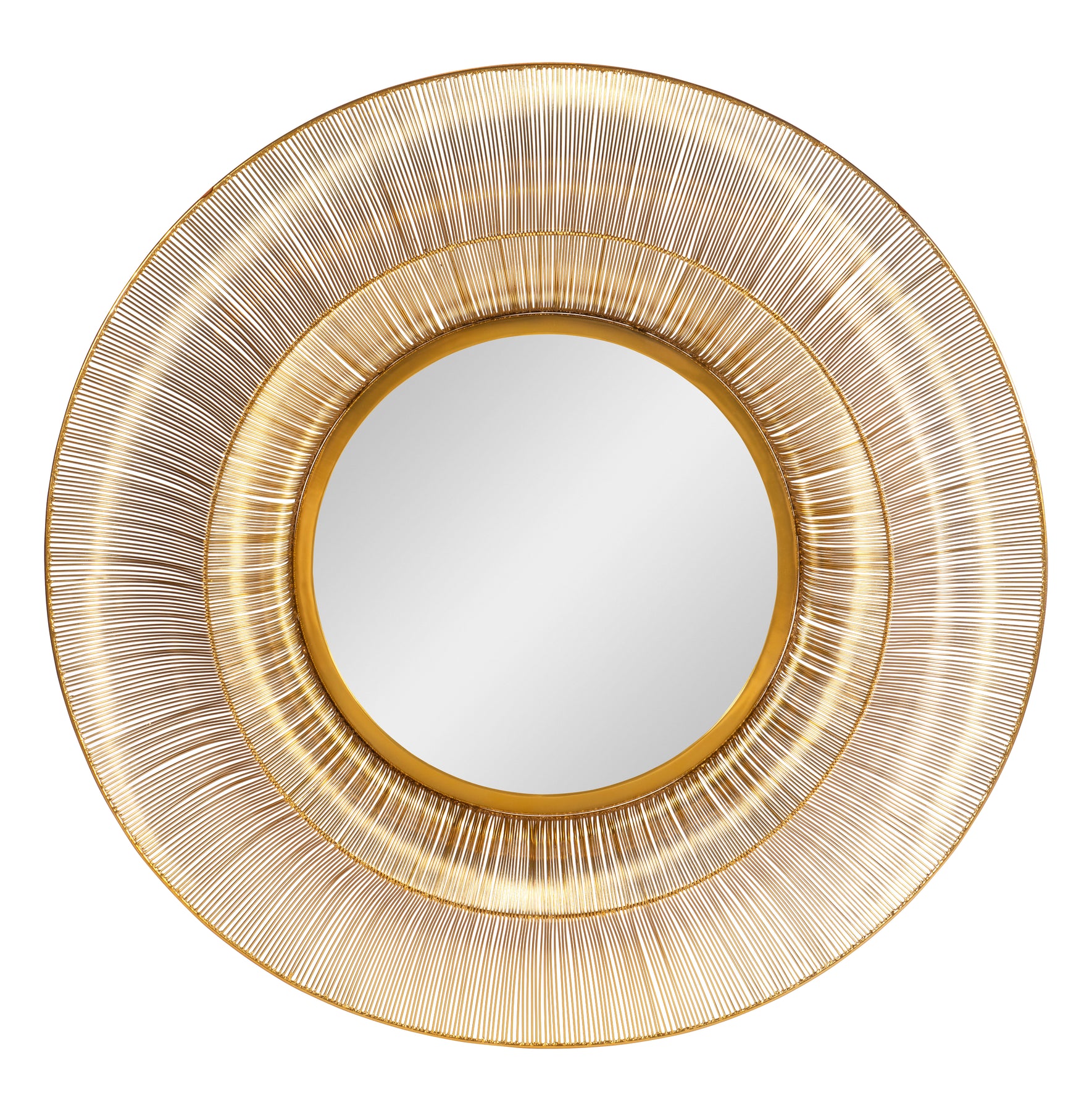 The Sawyer Mirror is a striking piece with an antique brass metal wire frame surrounding a clear mirror. It's perfect for enhancing any living room with its sophisticated design. The mirror’s clean, modern lines are paired with the intricate craftsmanship of the brass wire frame, creating a blend of contemporary elegance and timeless appeal.