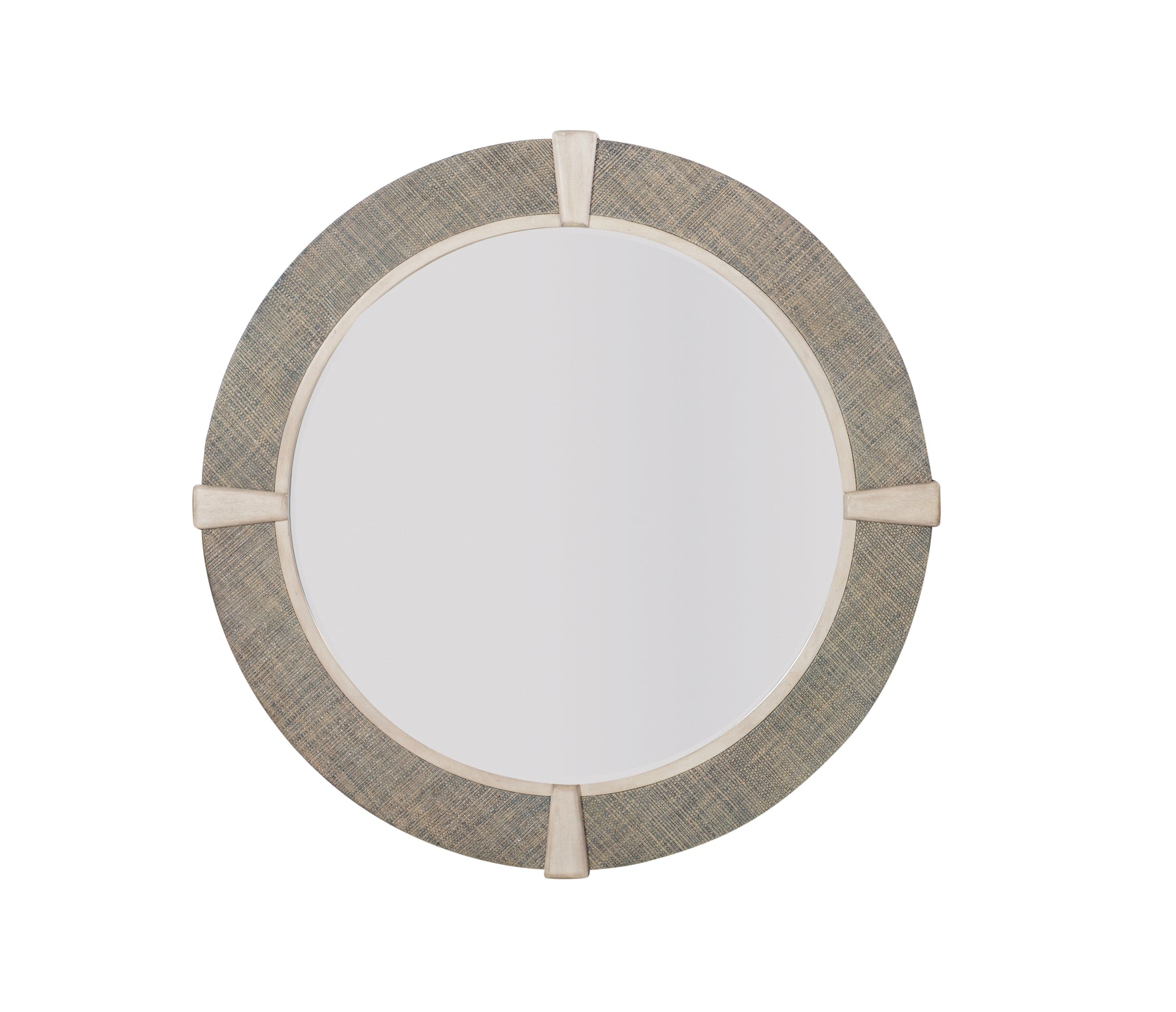 The Century Curate St. Simons 45" Mirror in French Grey/Pn features raffia with beech solids trim, combining classic design with natural textures. This elegant mirror is a perfect addition to any bedroom, enhancing the space with both style and sophistication.