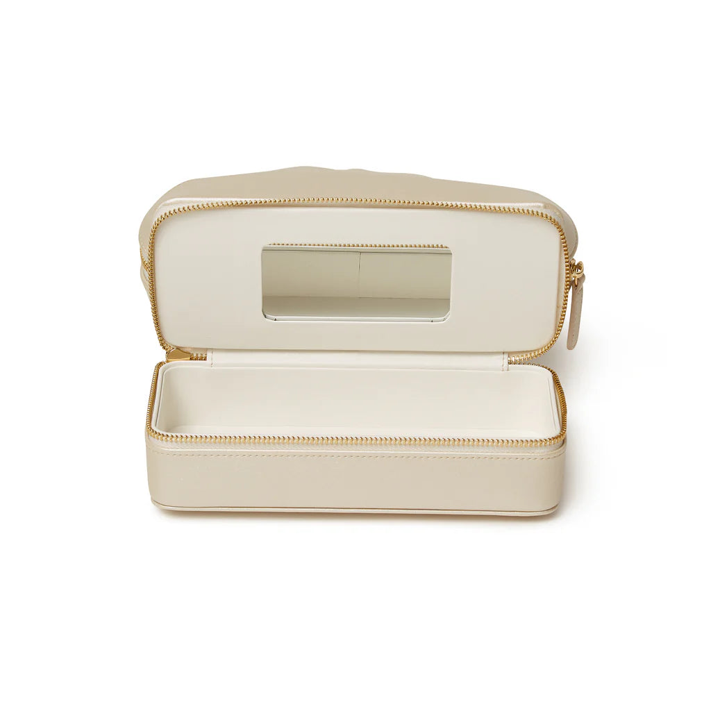 You will love this perfectly designed travel accessory! This duo travel storage solution has a zippered pocket on top for your everyday essentials, the bottom compartment unzips to reveal a storage space for necklaces, earrings, bracelets and rings.