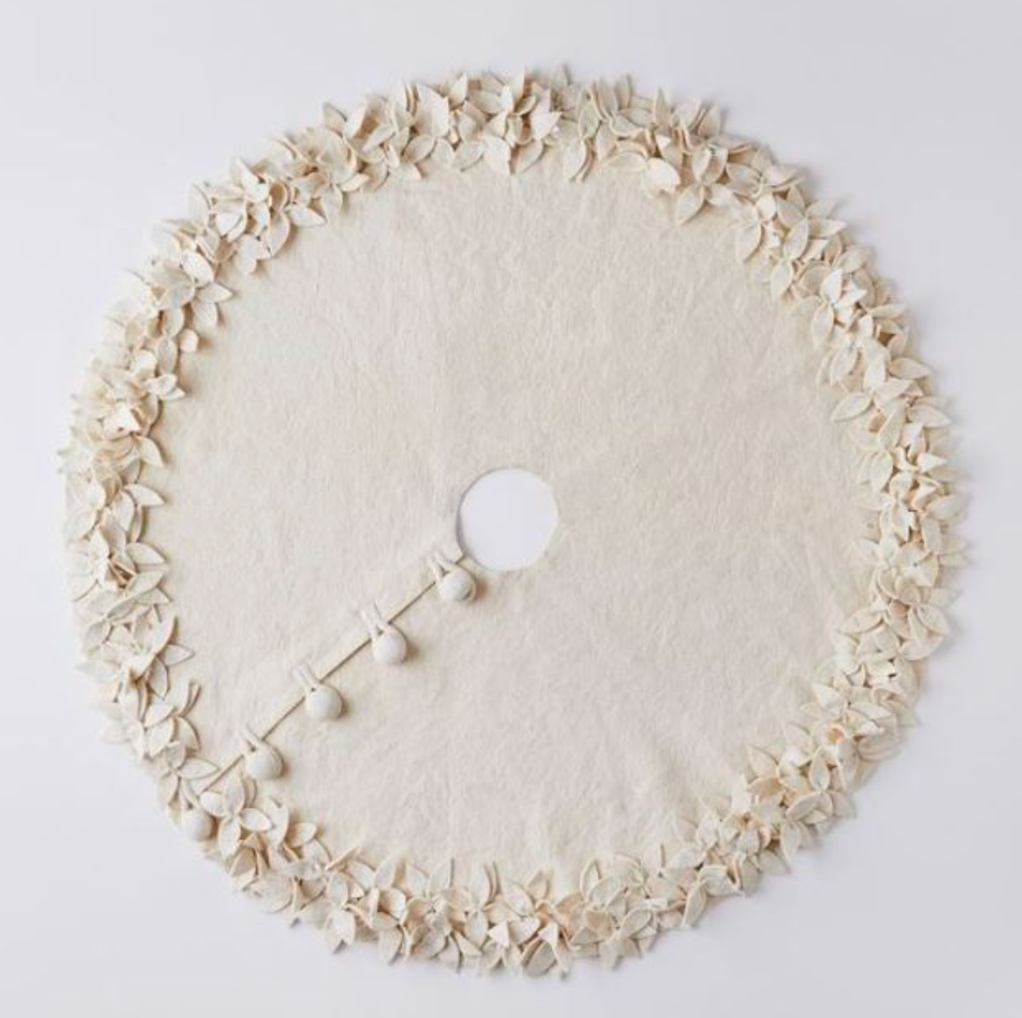 This spectacular overlapping flowers tree skirt features a beautiful tone on tone design with a gorgeous border of hand cut flower petals.