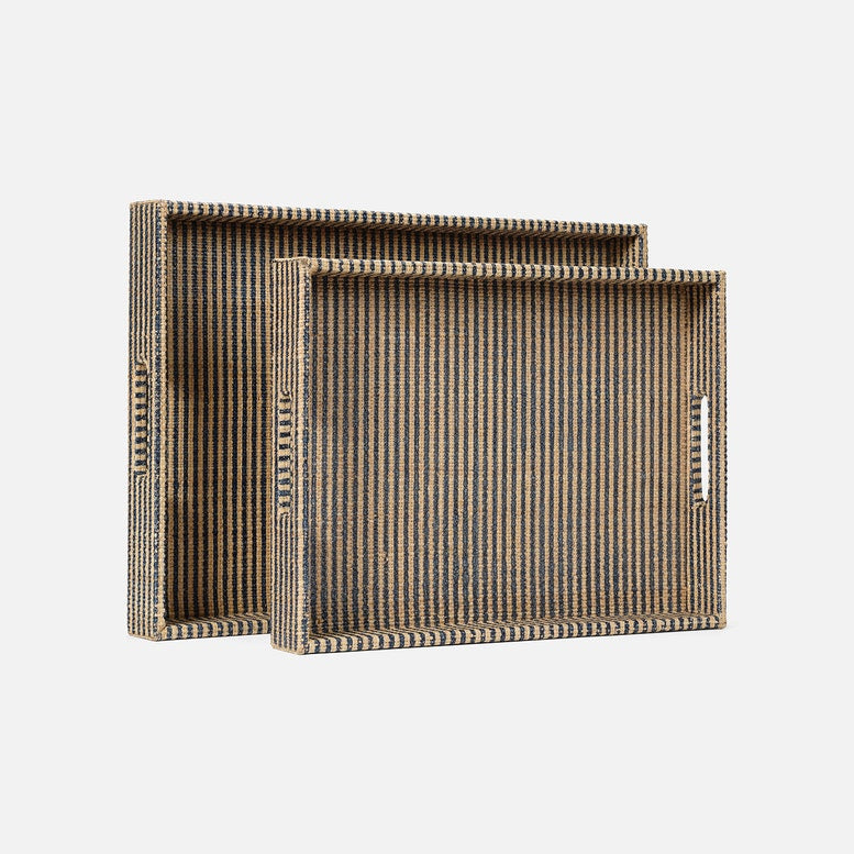 Made with precision from striped raffia, our Winslow trays are a stylish duo for organizing life's everyday trinkets. The subtle side handles add refined delicacy to these useful, timeless pieces.